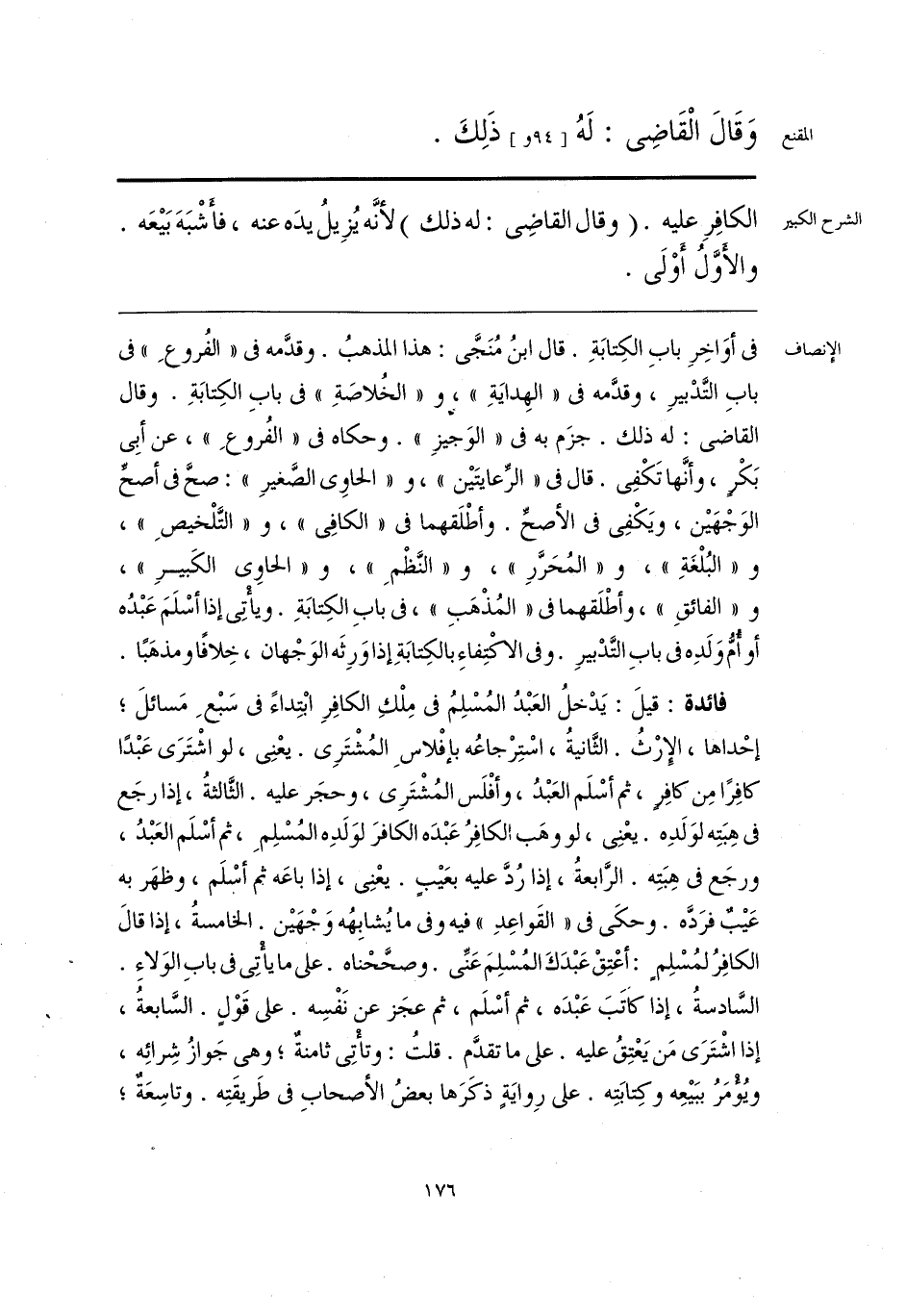 فى أوَاخِرِ بابِ الكِتابَةِ. قال ابنُ مُنَجَّى: هذا المذهبُ. وقدَّمه فى «الفُروعِ» فى بابِ التَّدْبيرِ، وقدَّمه فى «الهِدايَةِ»؛ و «الخُلاصَةِ» فى بابِ الكِتابَةِ. وقال القاضى: له ذلك. جزَم به فى «الوَجيزِ». وحكاه فى «الفُروعِ»، عن أبِى بَكْرٍ، وأنَّها تَكْفِى. قال فى «الرِّعايتَيْن»، و «الحاوِى الصَّغيرِ»: صحَّ فى أصحِّ الوَجْهَيْن، ويَكْفِى فى الأصحِّ. وأطْلَقهما فى «الكافِى»، و «التَّلْخيصِ»، و «البُلْغَةِ»، و «المُحَرَّرِ»، و «النَّظْمِ»، و «الحاوِى الكَبيرِ»، و «الفائقِ»، وأطْلَقهما فى «المُذْهَبِ»، فى بابِ الكِتابَةِ. ويأْتِى إذا أسْلَمَ عَبْدُه أو أُمُّ وَلَدِه فى بابِ التَّدْبيرِ. وفى الاكْتِفاءِ بالكِتابَةِ إذا وَرِثَه الوَجْهان، خِلافًا ومذهَبًا.