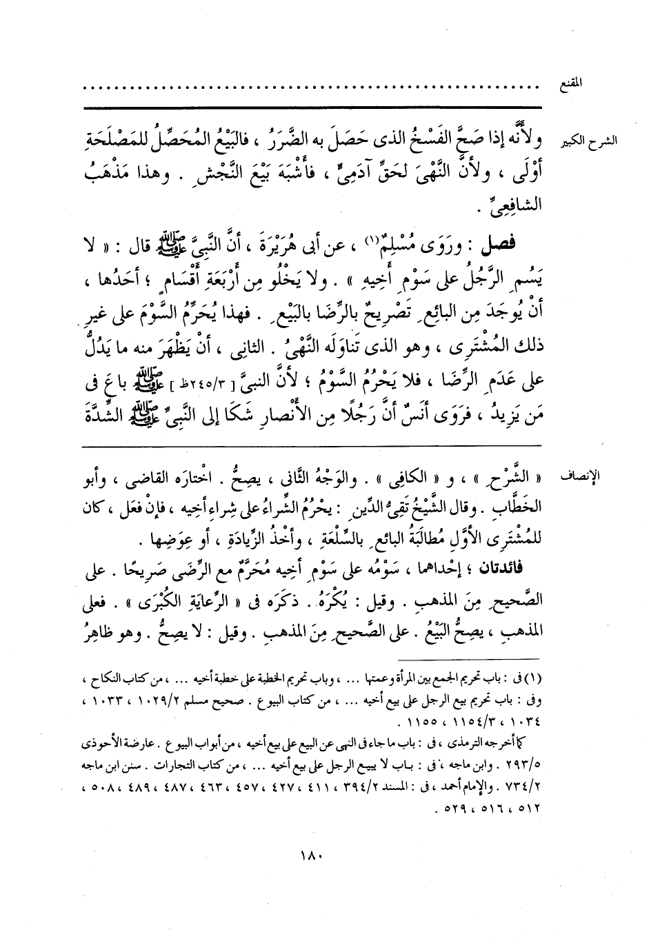 «الشَّرْحِ»، و «الكافِى». والوَجْهُ الثَّانى، يصِحُّ. اخْتارَه القاضى، وأبو الخَطَّابِ. وقال الشَّيْخُ تَقِىُّ الدِّينِ: يحْرُمُ الشِّراءُ على شِراءِ أخِيه، فإنْ فعَل، كان للمُشْتَرِى الأوَّلِ مُطالَبَةُ البائعِ بالسِّلْعَةِ، وأخْذُ الزِّيادَةِ، أو عِوَضِها.
