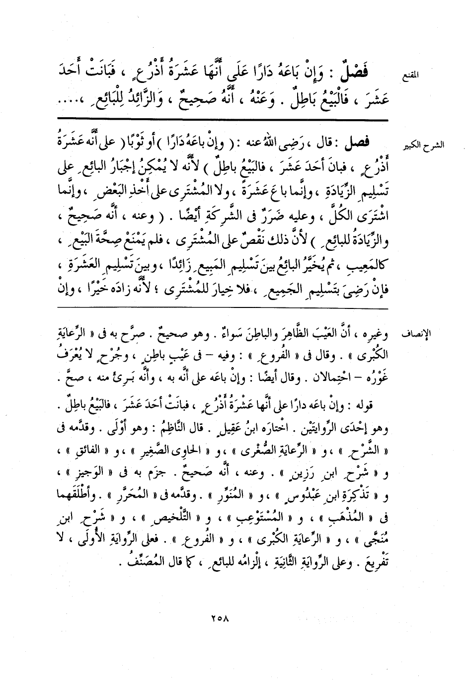 قوله: وإنْ باعَه دارًا على أنَّها عَشْرَةُ أَذْرُعٍ، فبانَتْ أحَدَ عَشَرَ، فالبَيْعُ باطِلٌ. وهو إحْدَى الرِّوايتَيْن. اخْتارَه ابنُ عَقِيلٍ. قال النَّاظِمُ: وهو أوْلَى. وقدَّمه فى «الشَّرْحِ»، و «الرِّعايَةِ الصُّغْرى»، و «الحاوِى الصَّغِيرِ»، و «الفائقِ»، و «شَرْحِ ابنِ رَزِينٍ». وعنه، أنّه صَحيحٌ. جزَم به فى «الوَجيزِ»، و «تَذْكِرَةِ ابنِ عَبْدُوسٍ»، و «المُنَوِّرِ». وقدَّمه فى «المُحَرَّرِ». وأطْلَقَهما فى «المُذْهَبِ»، و «المُسْتَوْعِبِ»، و «التَّلْخيصِ»، و «شَرْحِ ابنِ مُنَجَّى»، و «الرِّعايَةِ الكُبْرى»، و «الفُروعِ». فعلى الرِّوايَةِ الأُولَى، لا تَفْريعَ، وعلى الرِّوايَةِ الثَّانيةِ، إلْزامُه للبائعِ، كما قال المُصنِّفُ.