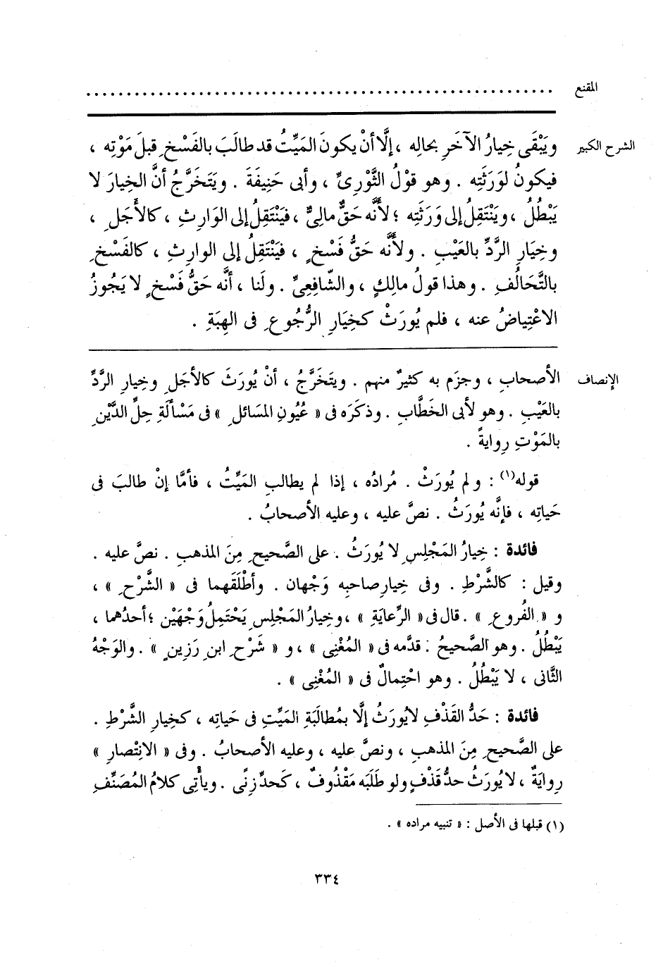 الأصحابِ، وجزَم به كثيرٌ منهم. ويتَخَرَّجُ، أنْ يُورَثَ كالأجَلِ وخِيارِ الرَّدِّ بالعَيبِ. وهو لأبي الخَطَّابِ. وذكَرَه في «عُيُونِ المسَائلِ» في مَسْألَةِ حِلِّ الدَّينِ بالمَوْتِ رِوايةً.
