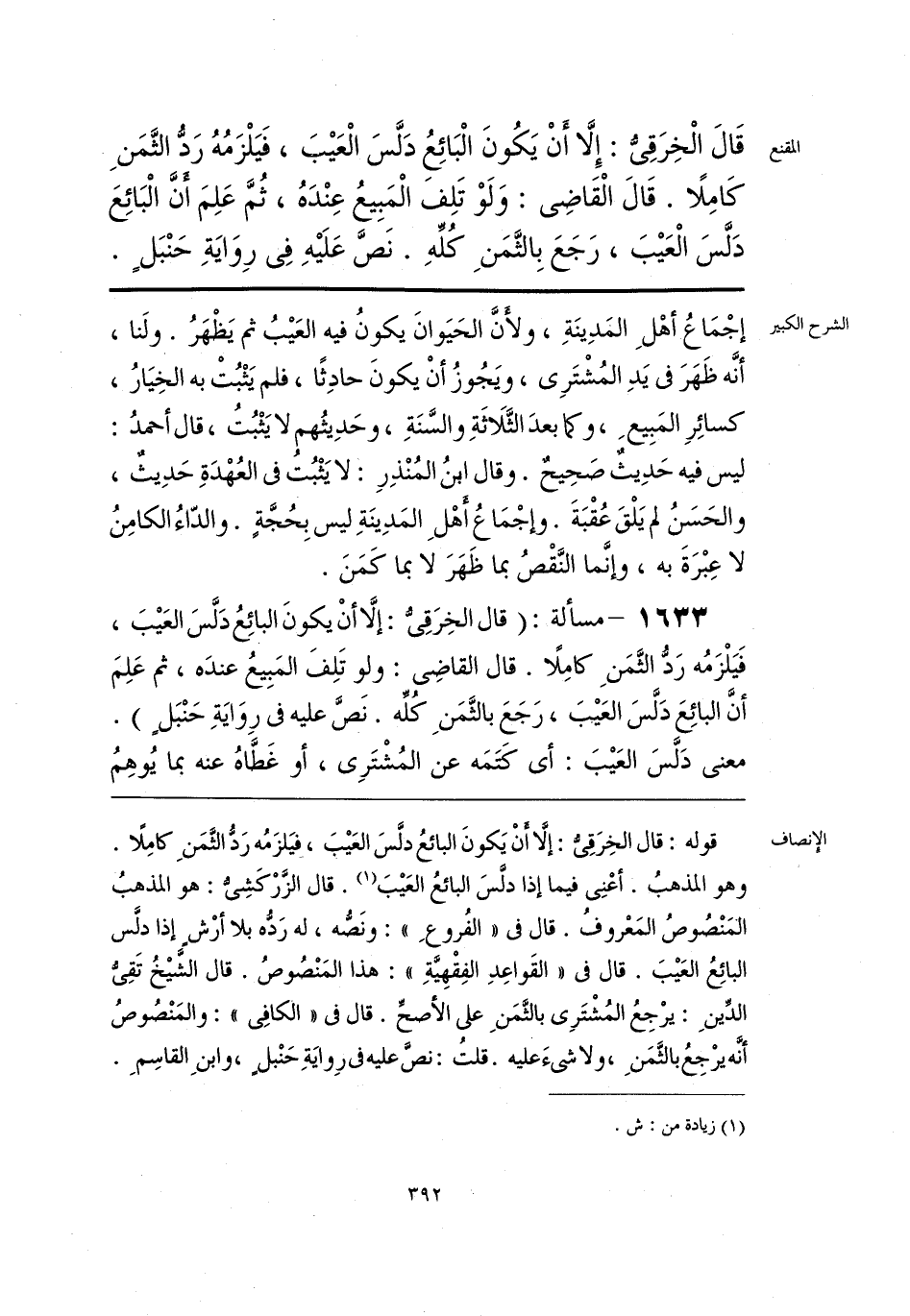 قوله: قال الخِرَقِيُّ: إلَّا أَنْ يَكونَ البائعُ دلَّسَ العَيبَ، فيَلزَمُه رَدُّ الثَّمَنِ كامِلًا. وهو المذهبُ. أعْنِي فيما إذا دلَّسَ البائعُ العَيبَ (¬1). قال الزَّرْكَشِيُّ: هو المذهبُ المنْصُوصُ المَعْروفُ. قال في «الفُروعِ»: ونَصُّه، له رَدُّه بلا أرْشٍ إذا دلَّس البائِعُ العَيبَ. قال في «القَواعِدِ الفِقْهِيَّةِ»: هذا المَنْصُوصُ. قال الشَّيخُ تَقِيُّ الدِّينِ: يرْجِعُ المُشْتَرِي بالثَّمَنِ على الأصحِّ. قال في «الكافِي»: والمَنْصُوصُ أنَّه يرْجِعُ بالثَّمَنِ، ولا شيءَ عليه. قلتُ: نصَّ عليه في رِوايَةِ حَنْبلٍ، وابنِ القاسِمِ.