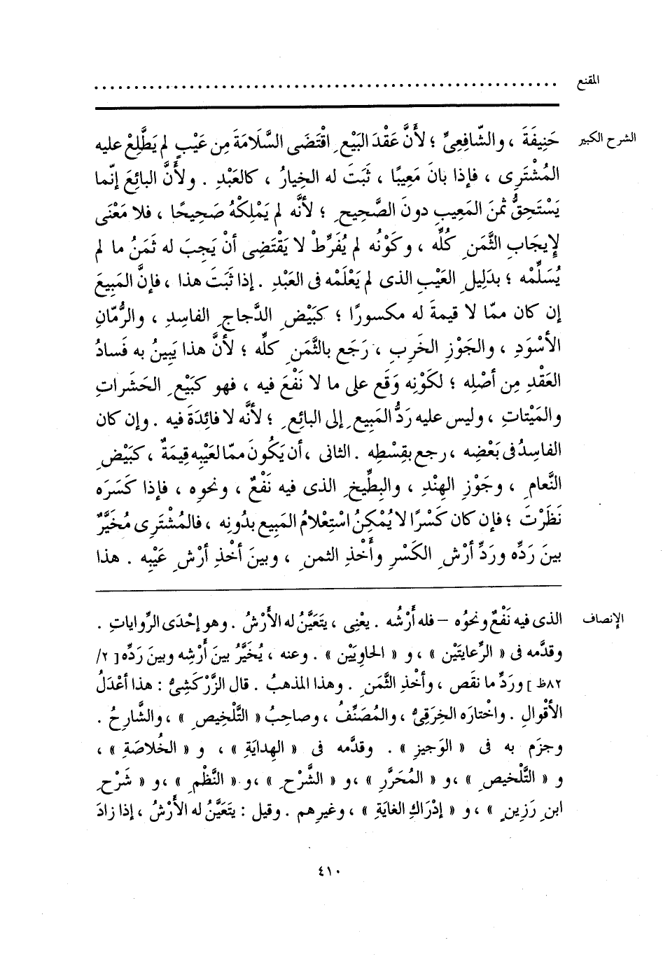 الذي فيه نَفْعٌ ونحوُه - فله أرْشُه. يعْنِي، يتَعَيَّنُ له الأرْشُ. وهو إحْدَى الرِّواياتِ. وقدَّمه في «الرِّعايتَين»، و «الحاويَين». وعنه، يُخيَّرُ بينَ أرْشِه وبينَ رَدِّه ورَدِّ ما نقَص، وأخْذِ الثَّمَنِ. وهذا المذهبُ. قال الزَّرْكَشِيُّ: هذا أعْدَلُ الأقْوالِ. واخْتارَه الخِرَقِيُّ، والمُصَنِّفُ، وصاحِبُ «التَّلْخِيصِ»، والشَّارِحُ. وجزَم به في «الوَجيزِ». وقدَّمه في «الهِدايَةِ»، و «الخُلاصَةِ»، و «التَّلْخيصِ»، و «المُحَرَّرِ»، و «الشرْحِ»، و «النَّظْمِ»، و «شَرْحِ ابنِ رَزِينٍ»، و «إدْرَاكِ الغايَةِ»، وغيرِهم. وقيل: يتَعَيَّنُ له الأرْشُ، إذا زادَ