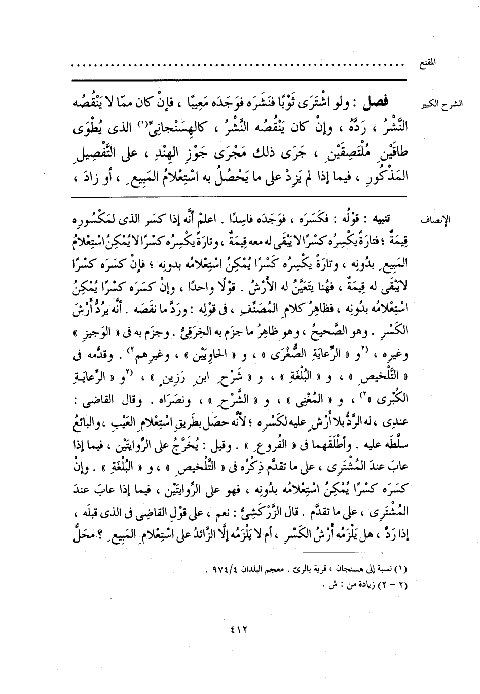 تنبيه: قوْلُه: فكَسَرَه، فوَجَدَه فاسِدًا. اعلمْ أنَّه إذا كسَر الذي لمَكْسُورِه قِيمَةٌ؛ فتارَةً يكْسِرُه كسْرًا لا يَبْقَى له معه قِيمَةٌ، وتارَةً يكْسِرُه كسْرًا لا يُمْكِنُ اسْتِعْلامُ المَبِيعِ بدُونِه، وتارَةً يكْسِرُه كَسْرًا يُمْكِنُ اسْتِعْلامُه بدونِه؛ فإنْ كسَرَه كسْرًا لا يبْقَى له قِيمَةٌ، فهُنا يتَعَيَّنُ له الأرْشُ. قوْلًا واحدًا، وإنْ كسَرَه كسْرًا يُمْكِنُ اسْتِعْلامُه بدُونِه، فظاهِرُ كلامِ المُصَنِّفِ، في قوْلِه: ورَدَّ ما نقَصَه. أنَّه يرُدُّ أرْشَ الكَسْرِ. وهو الصَّحيحُ، وهو ظاهِرُ ما جزَم به الخِرَقِيُّ. وجزَم به في «الوَجيزِ» وغيرِه، [و «الرِّعايَةِ الصُّغْرَى»، و «الحاويَين»، وغيرِهم] (2). وقدَّمه في «التَّلْخيصِ»، و «البُلْغَةِ»، و «شَرْحِ ابنِ رَزِينٍ»، [و «الرِّعايَةِ الكُبْرى»] (¬1)، و «المُغْنِي»، و «الشَّرْحِ»، ونصَرَاه. وقال القاضي: عندِي، له الرَّدُّ بلا أرْشٍ عليه لكَسْرِه؛ لأنَّه حصَل بطَريقِ اسْتِعْلامِ العَيبِ، والبائعُ سلَّطَه عليه. وأطْلَقَهما في «الفُروعِ». وقيل: يُخَرَّجُ على الرِّوايتَين، فيما إذا عابَ عندَ المُشْتَرِي، على ما تقدَّم ذِكْرُه في «التَّلْخيصِ»، و «البُلْغَةِ». وإنْ كسَرَه كسْرًا يُمْكِنُ اسْتِعْلامُه بدُونِه، فهو على الرِّوايتَين، فيما إذا عابَ عندَ المُشْتَرِي، على ما تقدَّم. قال الزَّرْكَشِيُّ: نعم، على قوْلِ القاضِي في الذي قبلَه، إذا رَدَّ، هل يَلْزَمُه أرْشُ الكَسْرِ، أم لا يَلْزَمُه إلَّا الزَّائدُ على اسْتِعْلامِ المَبِيعِ؟ محَلُّ