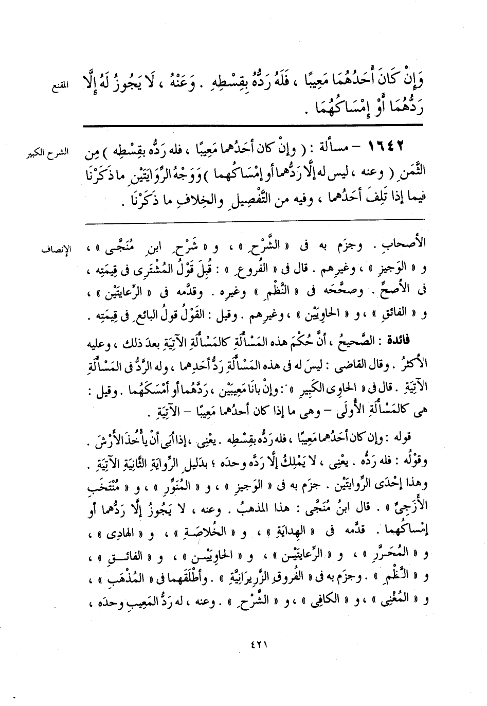وقوْلُه: فله رَدُّه. يعْنِي، لا يَمْلِكُ إلَّا رَدَّه وحدَه؛ بدَليلِ الرِّوايَةِ الثَّانِيَةِ الآتِيَةِ. وهذا إحْدَى الرِّوايتَين. جزَم به في «الوَجيزِ»، و «المُنَوِّرِ»، و «مُنْتَخَبِ الأَزَجِيِّ». قال ابنُ مُنَجَّى: هذا المذهبُ. وعنه، لا يَجُوزُ إلَّا رَدُّهما أو إمْساكُهما. قدَّمه في «الهِدايَةِ»، و «الخُلاصَةِ»، و «الهادِي»، و «المُحَرَّرِ»، و «الرعايتَين»، و «الحاويَين»، و «الفائقِ»، و «النَّظْمِ». وجزَم به في «الفُروقِ الزَّرِيرَانِيَّةِ». وأطْلَقَهما في «المُذْهَبِ»، و «المُغْنِي»، و «الكافِي»، و «الشرْحِ». وعنه، له رَدُّ المَعِيبِ وحدَه،