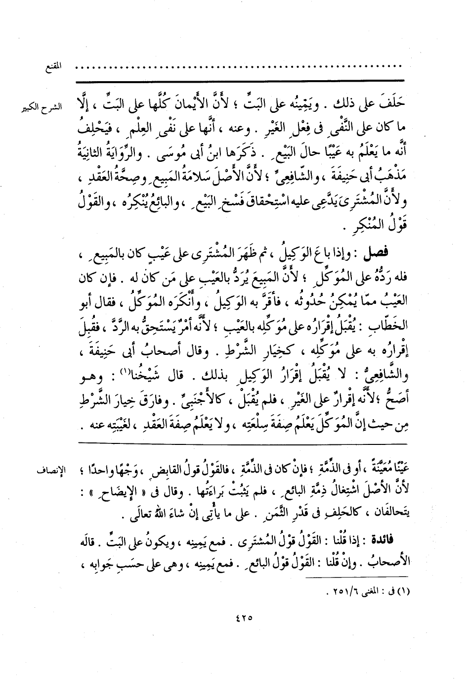 عَينًا مُعَيَّنَةً، أو في الذِّمَّةِ؛ فإنْ كان في الذِّمَّةِ، فالقَوْلُ قولُ القابِض، وَجْهًا واحدًا؛ لأنَّ الأصْلَ اشْتِغالُ ذِمَّةِ البائعِ، فلم يَثبُتْ بَراءَتُها. وقال في «الإِيضَاحِ»: يتَحالفَان، كالحَلِفِ في قَدْرِ الثَّمَنِ. على ما يأْتِي إنْ شاءَ اللهُ تعالى.