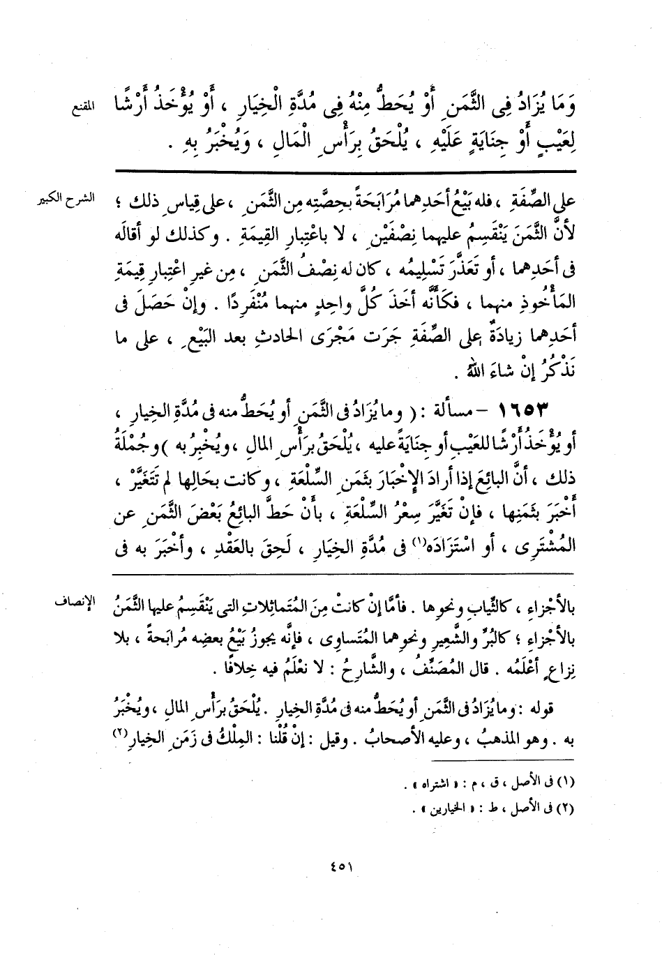 وَمَا يُزَادُ في الثَّمَنِ أوْ يُحَطُّ مِنْهُ في مُدَّةِ الْخِيَارِ، أَوْ يُؤْخَذُ أَرْشًا لِعَيبٍ أَوْ جِنَايَةٍ عَلَيهِ، يُلْحَقُ بِرَأْسِ الْمَالِ، وَيُخبَرُ بِهِ.