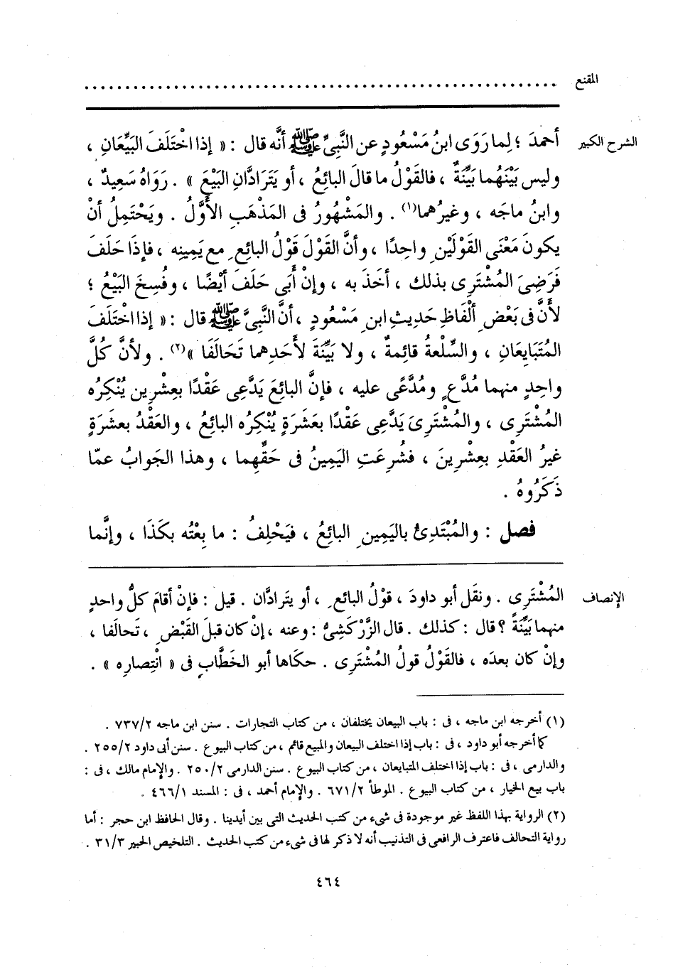 المُشْتَرِي. ونقَل أبو داودَ، قوْلُ البائعِ، أو يتَرادَّان. قيل: فإنْ أقامَ كلُّ واحدٍ منهما بَيِّنَةً؟ قال: كذلك. قال الزَّرْكَشِيُّ: وعنه، إنْ كان قبلَ القَبْضِ، تَحالفا، وإنْ كان بعدَه، فالقَوْلُ قولُ المُشْتَرِي. حكَاها أبو الخَطَّاب في «انْتِصارِه».