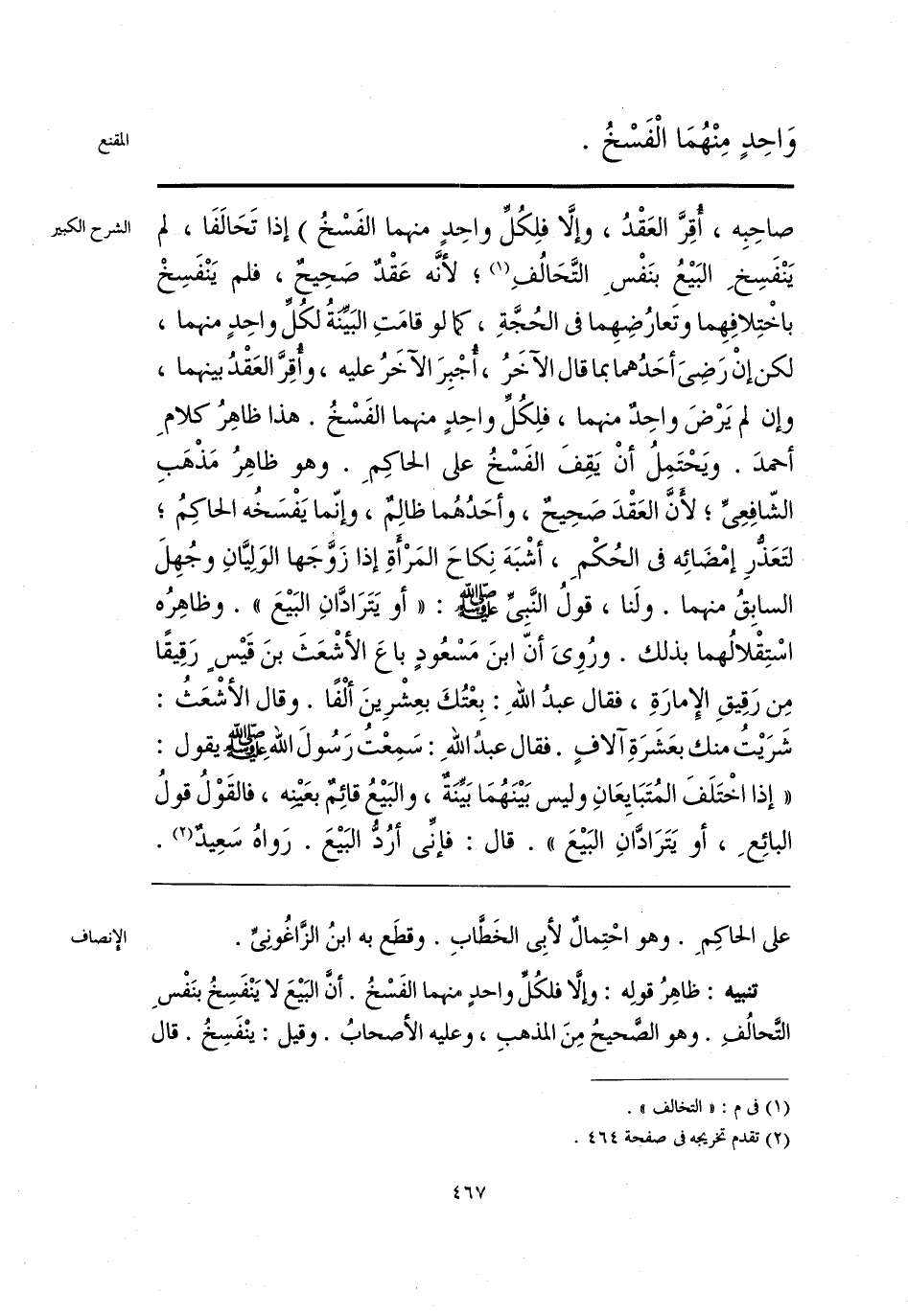 وَاحِدٍ مِنْهُمَا الْفَسْخُ.