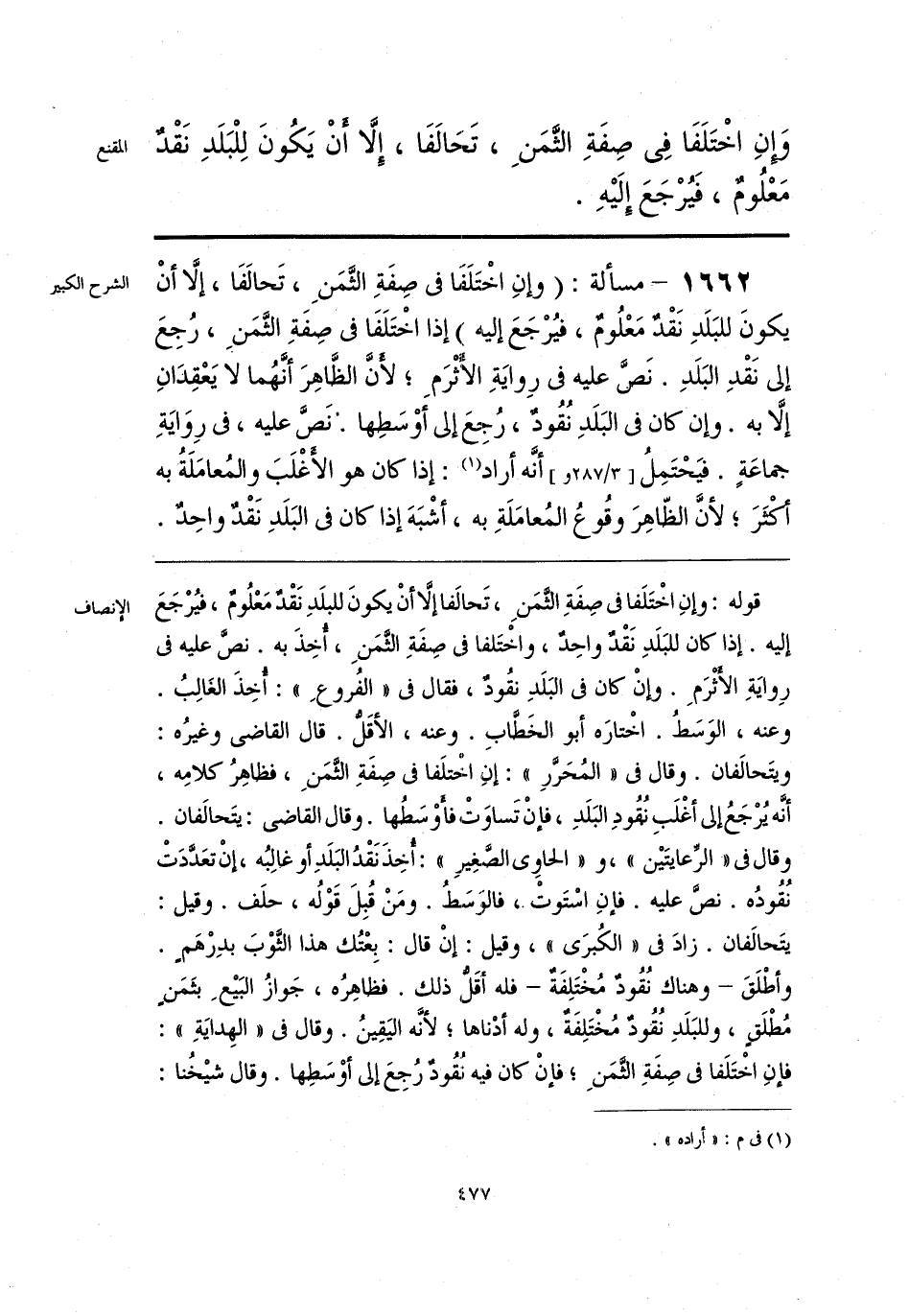 قوله: وإنِ اخْتَلَفا في صِفَةِ الثَّمَنِ، تَحالفا إلَّا أنْ يكونَ للبلَدِ نَقْدٌ مَعْلُومٌ، فيُرْجَعَ إليه. إذا كان للبَلَدِ نَقْدٌ واحِدٌ، واخْتَلفا في صِفَةِ الثَّمَنِ، أُخِذَ به. نصَّ عليه في رِوايَةِ الأَثْرَمِ. وإنْ كان في البَلَدِ نقُودٌ، فقال في «الفُروعِ»: أُخِذَ الغَالِبُ. وعنه، الوَسَطُ. اخْتارَه أبو الخَطَّابِ. وعنه، الأقَلُّ. قال القاضي وغيرُه: ويتَحالفان. وقال في «المُحَرَّرِ»: إنِ اخْتلَفا في صِفَةِ الثَّمَنِ، فظاهِرُ كلامِه، أنَّه يُرْجَعُ إلى أغْلَبِ نُقُودِ البَلَدِ، فإنْ تساوَتْ فأَوْسَطُها. وقال القاضي: يتَحالفان. وقال في «الرِّعايتَين»، و «الحاوي الصَّغِير»: أُخِذَ نَقْدُ البَلَدِ أو غالِبُه، إنْ تعَدَّدَتْ نُقُودُه. نصَّ عليه. فإنِ اسْتَوتْ، فالوَسَطُ. ومَنْ قُبِلَ قَوْلُه، حلَف. وقيل: يتَحالفان. زادَ في «الكُبرَى»، وقيل: إنْ قال: بِعْتُك هذا الثَّوْبَ بدِرْهَمٍ. وأطْلَقَ -وهناك نُقُودٌ مُخْتَلِفَةٌ- فله أقَلُّ ذلك. فظاهِرُه، جَوازُ البَيعِ بثَمَنٍ مُطْلَقٍ، وللبَلَدِ نُقُودٌ مُخْتَلِفَةٌ، وله أدْناها؛ لأنَّه اليَقِينُ. وقال في «الهِدايَةِ»: فإنِ اخْتَلَفا في صِفَةِ الثَّمَنِ؛ فإنْ كان فيه نُقُودٌ رُجِعَ إلى أوْسَطِها. وقال شيخُنا:
