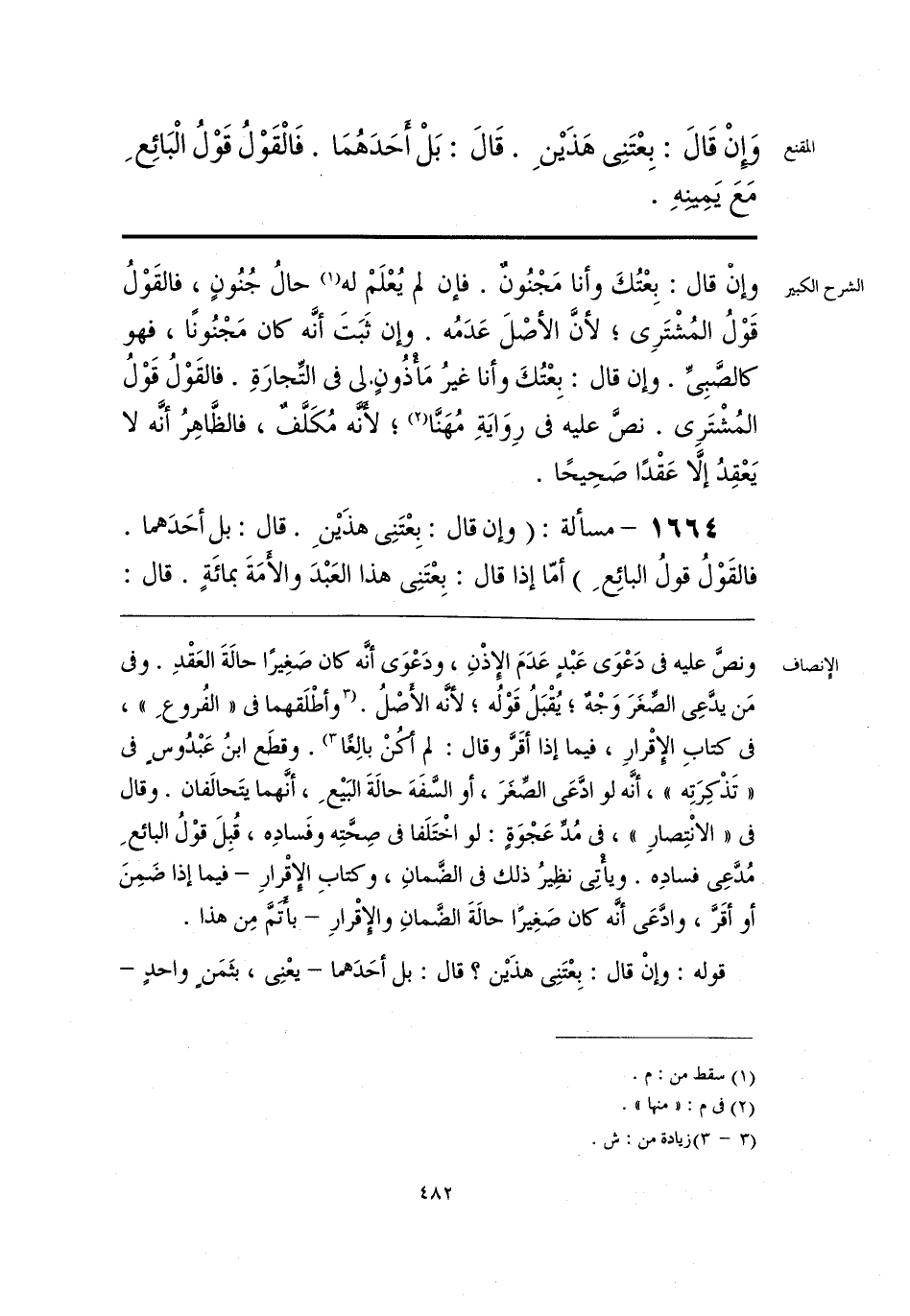 ونصَّ عليه في دَعْوَى عَبْدٍ عَدَمَ الإِذْنِ، ودَعْوَى أنَّه كان صَغِيرًا حالةَ العَقْدِ. وفي مَن يدَّعِي الصِّغَرَ وَجْهٌ؛ يُقْبَلُ قَوْلُه؛ لأنَّه الأَصْلُ. [وأطْلَقهما في «الفُروعِ»، في كتابِ الإِقْرارِ، فيما إذا أقَرَّ وقال: لم أكُنْ بالِغًا] (¬1). وقطَع ابنُ عَبْدُوسٍ في «تَذْكِرَتِه»، أنَّه لو ادَّعَى الصِّغَرَ، أو السَّفَهَ حالةَ البَيعِ، أنَّهما يتَحالفان. وقال في «الانْتِصارِ»، في مُدِّ عَجْوَةٍ: لو اخْتَلَفا في صِحَّتِه وفَسادِه، قُبِلَ قوْلُ البائعِ مُدَّعِي فسادِه. ويأْتِي نظِيرُ ذلك في الضَّمانِ، وكتابِ الإِقْرارِ -فيما إذا ضَمِنَ أو أقَرَّ، وادَّعَى أنَّه كان صَغِيرًا حالةَ الضَّمانِ والإِقْرارِ- بأَتَمَّ مِن هذا.