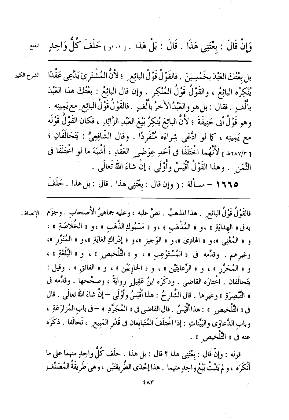 فالقَوْلُ قَوْلُ البائعِ. هذا المذهبُ. نصَّ عليه، وعليه جماهيرُ الأصحابِ. وجزَم به في «الهِدايَةِ»، و «المُذْهَبِ»، و «مَسْبُوكِ الذَّهَبِ»، و «الخُلاصَةِ»، و «المُغْنِي»، و «الهادِي»، و «الوَجيزِ»، و «إدْراكِ الغايَةِ»، و «المُنَوِّرِ»، وغيرِهم. وقدَّمه في «المُسْتَوْعِبِ»، و «التلْخيصِ»، و «البُلْغَةِ»، و «المُحَرَّرِ»، و «الرِّعايتَين»، و «الحاويَين»، و «الفائقِ». وقيل: يتَحالفان. اخْتارَه القاضي. وذكَرَه ابنُ عَقِيلٍ رِوايَةً، وصحَّحها. وقدَّمه في «التَّبْصِرَةِ» وغيرِها. قال الشَّارِحُ: هذا أقْيَسُ وأوْلَى -إنْ شاءَ اللهُ تعالى. قال في «التَّلْخيصِ»: هذا أقْيَسُ. قال القاضي في «المُجَردِ» - في بابِ المُزارَعَةِ، وبابِ الدَّعاوَى والبَيِّناتِ: إذا اخْتلَفَ المُتَبايِعان في قَدْرِ المَبِيعِ، تَحالفا. ذكَرَه عنه في «التَّلْخيصِ».