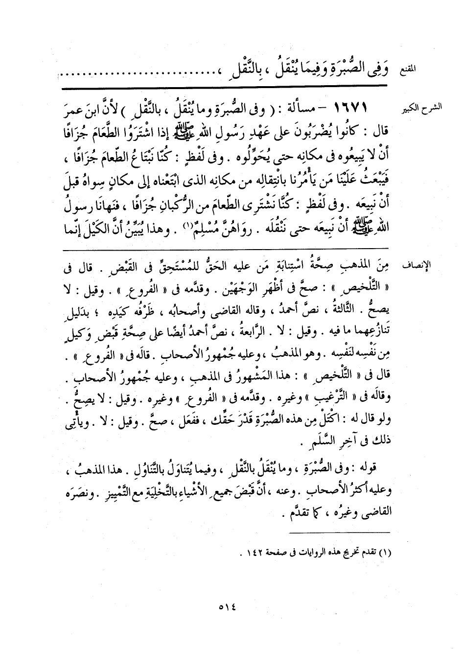 وَفِي الصُّبْرةِ وَفِيمَا يُنْقَلُ، بِالنَّقْلِ،