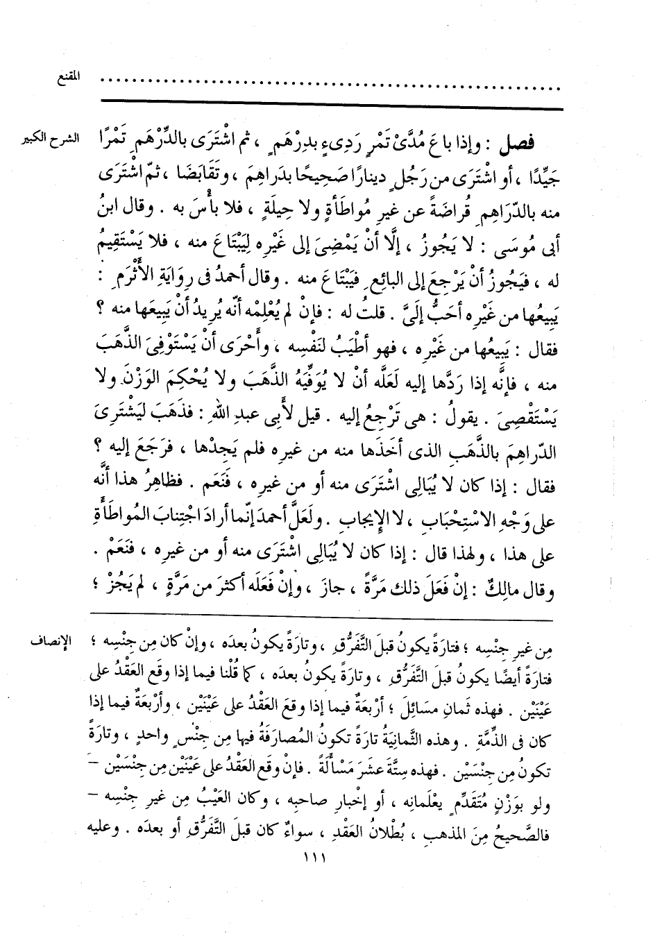 مِن غيرِ جِنْسِه؛ فتارَةً يكونُ قبلَ التَّفَرُّقِ، وتارَةً يكونُ بعدَه، وإنْ كان مِن جِنْسِه، فتارَةً أيضًا يكونُ قبلَ التَّفَرُّقِ، وتارَةً يكونُ بعدَه، كما قُلْنا فيما إذا وقَع العَقْدُ على عَينَين. فهذه ثَمانِ مسَائِلَ، أرْبعَةٌ فيما إذا وقعَ العَقْدُ على عَينَين، وأرْبعَةٌ فيما إذا كان في الذِّمَّةِ. وهذه الثَّمانِيَةُ تارَةً تكونُ المُصارَفَةُ فيها مِن جِنْسٍ واحدٍ، وتارَةً تكونُ مِن جِنْسَين. فهذه سِتَّةَ عشَرَ مَسْألَةً. فإنْ وقَع العَقْدُ على عَينَين مِن جِنْسَين -ولو بوَزْنٍ مُتَقَدِّمٍ يعْلَمانِه، أو إخْبارِ صاحبِه، وكان العَيبُ مِن غيرِ جِنْسِه- فالصَّحيحُ مِنَ المذهبِ، بُطْلانُ العَقْدِ، سواء كان قبلَ التَّفَرُّقِ أو بعدَه. وعليه