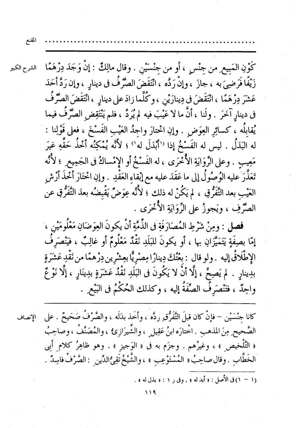 كانا جِنْسَين -فإنْ كان قبلَ التَّفَرُّقِ ردَّه، وأخَذ بدَلَه، والصَّرْفُ صَحَيحٌ. على الصَّحيحِ مِنَ المذهبِ. اخْتارَه ابنُ عَقِيلٍ، والشِّيرَازِيُّ، والمُصَنِّفُ، وصاحِبُ «التُّلْخيصِ»، وغيرُهم. وجزَم به في «الوَجيزِ». وهو ظاهِرُ كلام أبِي الخَطَّابِ. وقال صاحِبُ «المُسْتَوْعِبِ»، والشَّيخُ تَقِيُّ الدِّينِ: الصَّرْفُ فاسِدٌ.