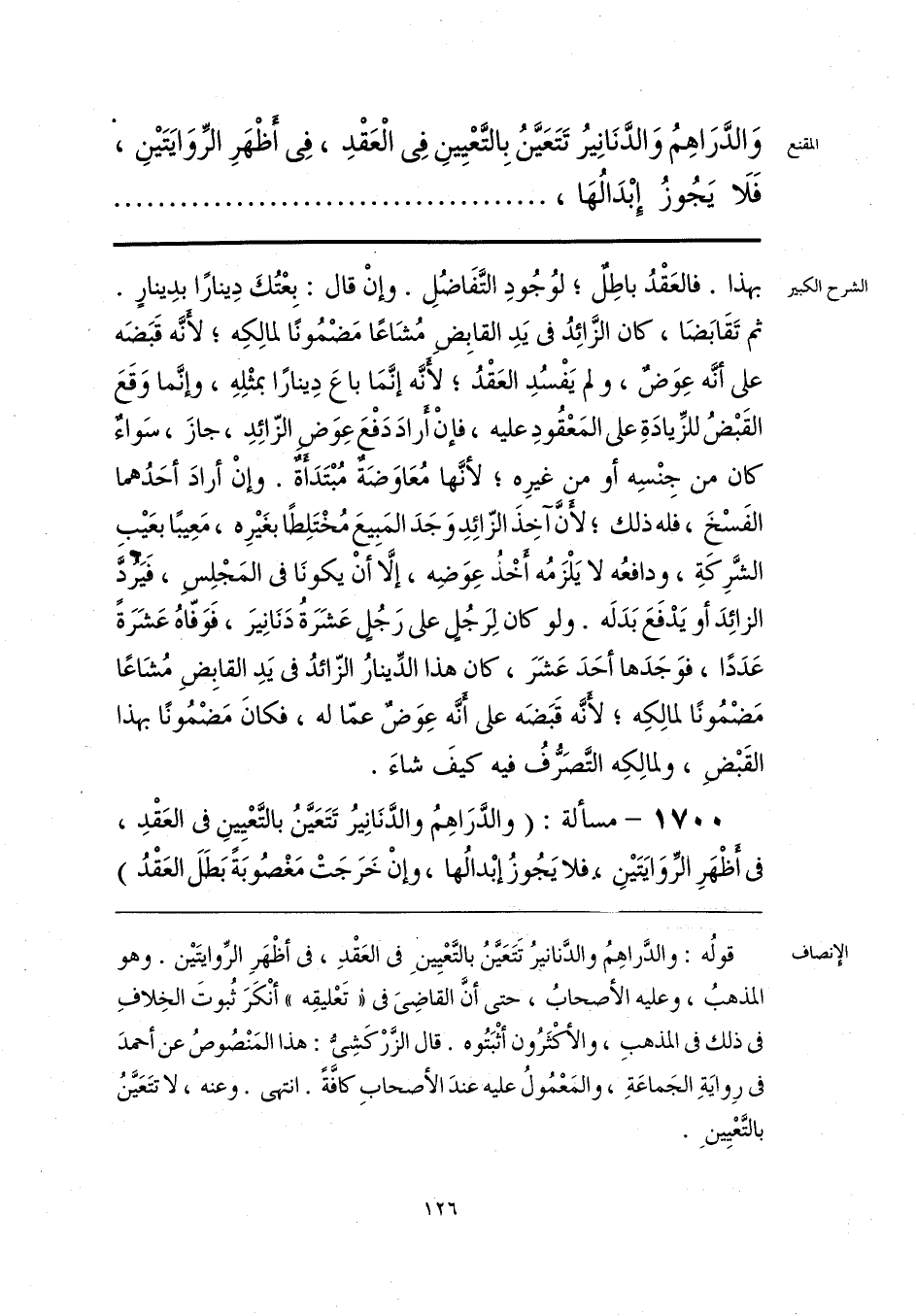 قولُه: والدَّراهِمُ والدَّنانيرُ تَتَعَيَّنُ بالتَّعْيِينِ في العَقْدِ، في أظْهَرِ الرِّوايتَين. وهو المذهبُ، وعليه الأصحابُ، حتى أنَّ القاضِيَ في «تَعْليقِه» أنْكَرَ ثبوتَ الخِلافِ في ذلك في المذهبِ، والأكْثَرُون أثْبَتُوه. قال الزَّرْكَشِيُّ: هذا المَنْصوصُ عن أحمدَ في رِوايَةِ الجَماعَةِ، والمَعْمُولُ عليه عندَ الأصحابِ كافَّةً. انتهى. وعنه، لا تتَعَيَّنُ بالتَّعْيِينَ.
