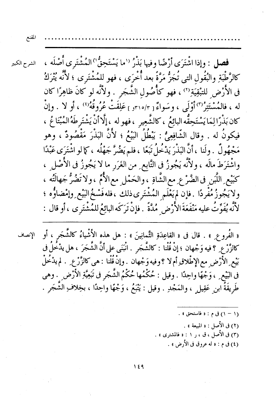 «الفُروعِ». قال في «القاعِدَةِ الثَّمانِينَ»: هل هذه الأشْياءُ كالشَّجَرِ، أو كالزَّرْعِ؟ فيه وَجْهان؛ إنْ قُلْنا: كالشَّجَرِ. انْبَنَى على أنَّ الشَّجَرَ، هل يدْخُلُ في بَيعِ الأرْضِ مع الإِطْلاقِ أم لا؟ وفيه وَجْهان. وإنْ قُلْنا: هي كالزَّرْعِ. لم يدْخُلْ في البَيعِ، وَجْهًا واحِدًا. وقيل: حُكْمُها حُكْمُ الشَّجَرِ في تَبَعِيَّةِ الأرْضِ. وهي طَرِيقَةُ ابنِ عَقِيل، والمَجْدِ. وقيل: يَتْبَعُ، وَجْهًا واحِدًا، بخِلافِ الشَّجَرِ.