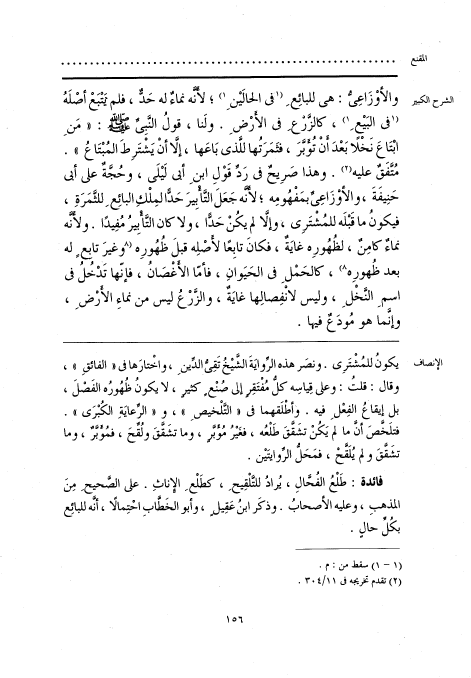 يكونُ للمُشْتَرِي. ونصَر هذه الرِّوايَةَ الشَّيخُ تَقِيُّ الدِّينِ، واخْتارَها في «الفائقِ»، وقال: قلتُ: وعلى قِياسِه كلُّ مُفْتَقِر إلى صُنْع كثير، لا يكونُ ظُهُورُه الفَصْلَ، بل إيقاعُ الفِعْلِ فيه. وأطْلَقهما في «التَّلْخيصِ»، و «الرِّعايَةِ الكُبْرَى». فتلَخَّصَ أنّ ما لم يَكُنْ تشَقَّقَ طَلْعُه، فغَيرُ مُؤبّر، وما تشَقَّقَ ولُقِّحَ، فمُؤبَّر، وما تشَقّقَ ولم يُلَقَّحْ، فمَحَل الرِّوايتَين.