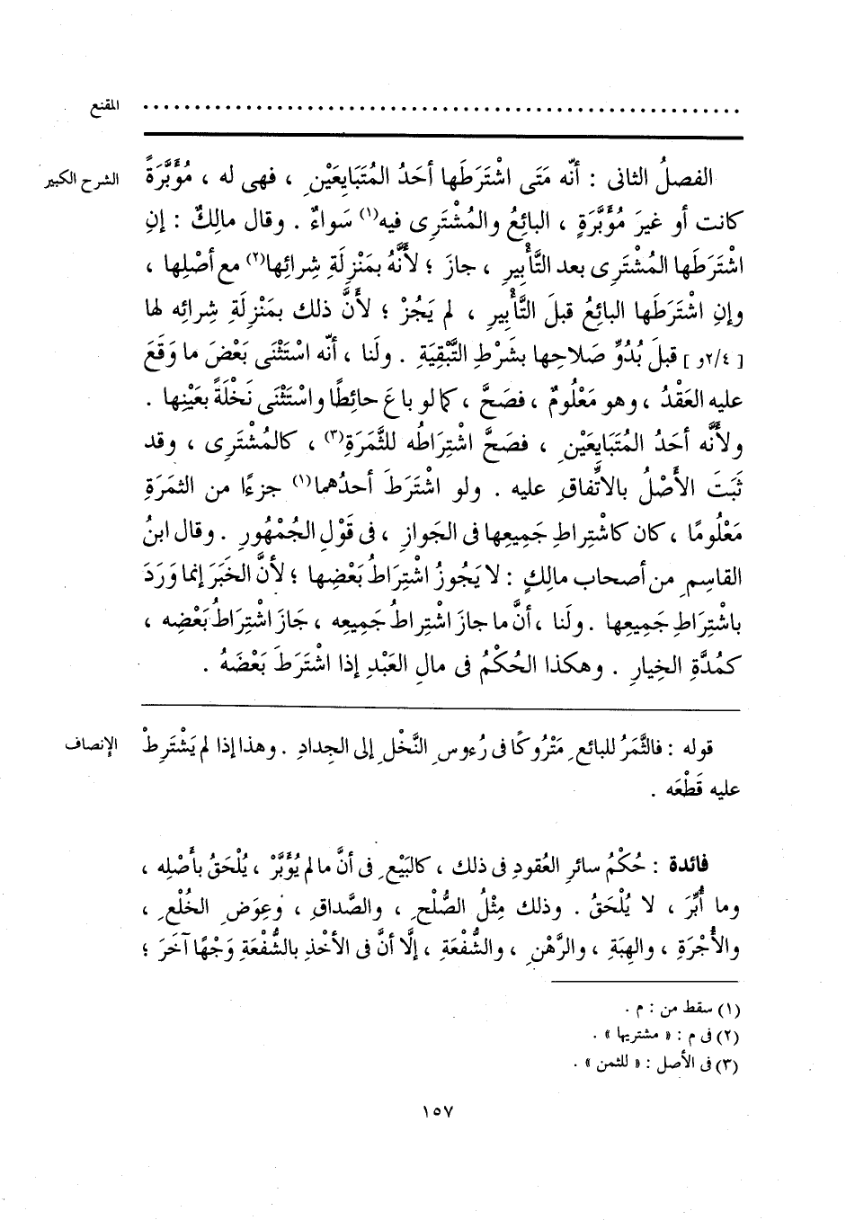 فائدة: حُكْمُ سائرِ العُقودِ في ذلك، كالبَيعِ في أنَّ ما لم يُؤبَّرْ، يُلْحَقُ بأصْلِه، وما أُبِّرَ، لا يُلْحَقُ. وذلك مِثْلُ الصُّلْحِ، والصَّداقِ، وعِوَضِ الخُلْعِ، والأجْرَةِ، والهِبَةِ، والرَّهْنِ، والشُّفْعَةِ، إلا أنَّ في الأخْذِ بالشفْعَةِ وَجْهًا آخَرَ؛