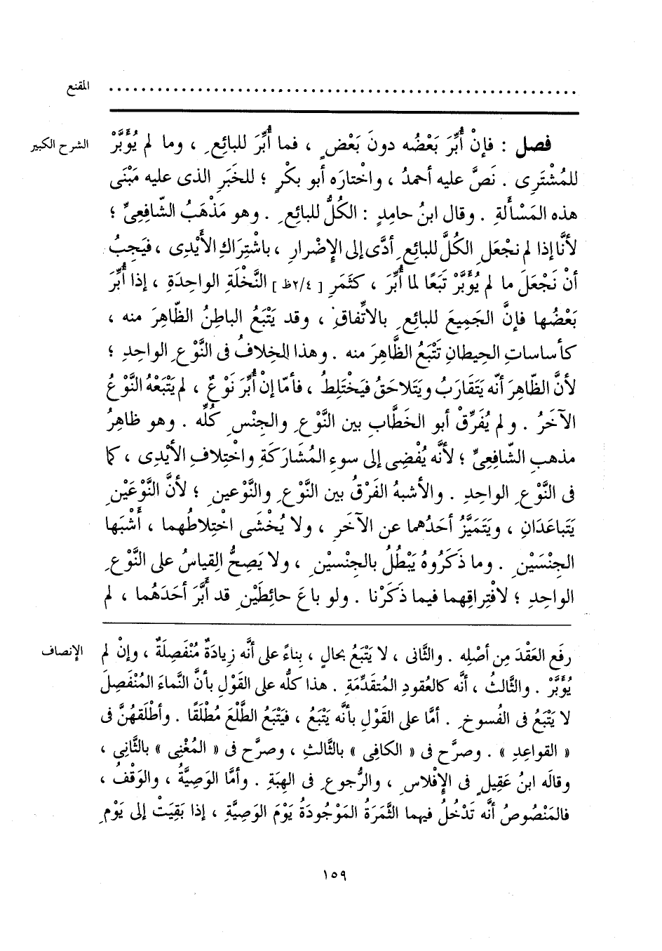 رفَع العَقْدَ مِن أصْلِه. والثَّاني، لا يَتْبَعُ بحالٍ، بِناءً على أنَّه زِيادَة مُنْفَصِلَةٌ، وإنْ لم يُؤبَّرْ. والثَّالثُ، أنَّه كالعُقودِ المُتقَدِّمَةِ. هذا كله على القَوْلِ بأنَّ النَّماءَ المُنْفَصِلَ لا يَتْبَعُ في الفُسوخِ. أمَّا على القَوْلِ بأنَّه يَتْبَعُ، فيَتْبَعُ الطَّلْعَ مُطْلَقًا. وأطْلَقهُنَّ في «القواعِدِ». وصرَّح في «الكافِي» بالثَّالثِ، وصرَّح في «المُغْني» بالثَّانِي، وقاله ابنُ عَقِيل في الإِفْلاسِ، والرُّجوعِ في الهِبَةِ. وأمَّا الوَصِيَّةُ، والوَقْفُ، فالمَنْصُوصُ أنَّه تَدْخُلُ فيهما الثَّمَرَةُ المَوْجُودَةُ يَوْمَ الوَصِيَّةِ، إذا بَقِيَتْ إلى يَوْمِ