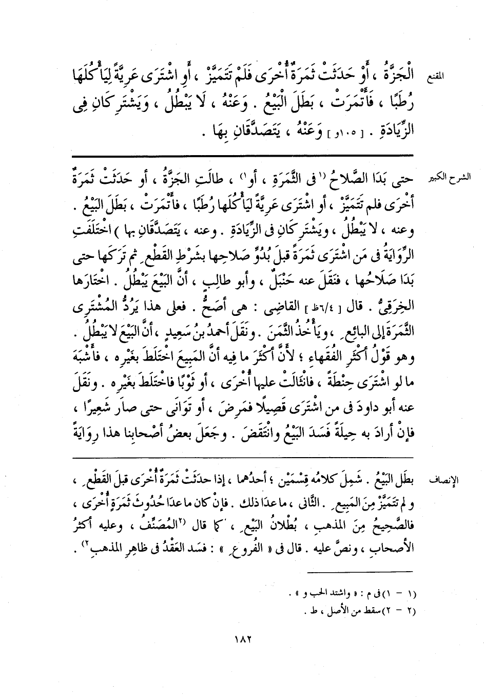 بطَل البَيعُ. شَمِلَ كلامُه قِسْمَين؛ أحدُهما، إذا حدَثَتْ ثَمَرَة أخْرَى قبلَ القَطْعِ، ولم تتَمَيَّزْ مِنَ المَبِيعِ. الثَّاني، ما عدَا ذلك. فإنْ كان ما عدَا حُدُوثَ ثَمَرَةٍ أخْرَى، فالصَّحِيحُ مِنَ المذهبِ، بُطْلانُ البَيعِ، كما قال [المُصَنِّفُ، وعليه أكثرُ الأصحابِ، ونصَّ عليه. قال في «الفُروعِ»: فسَد العَقْدُ في ظاهِرِ المذهبِ] (¬1).