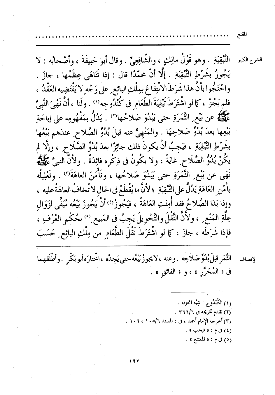 الثمَرِ قبلَ بُدُو صَلاحِه. وعنه، لا يجوزُ بَيعُه حتى يَجِدَّه، اخْتارَه أبو بَكْر. وأطْلَقهما في «المُحَرَّرِ»، و «الفائقِ».