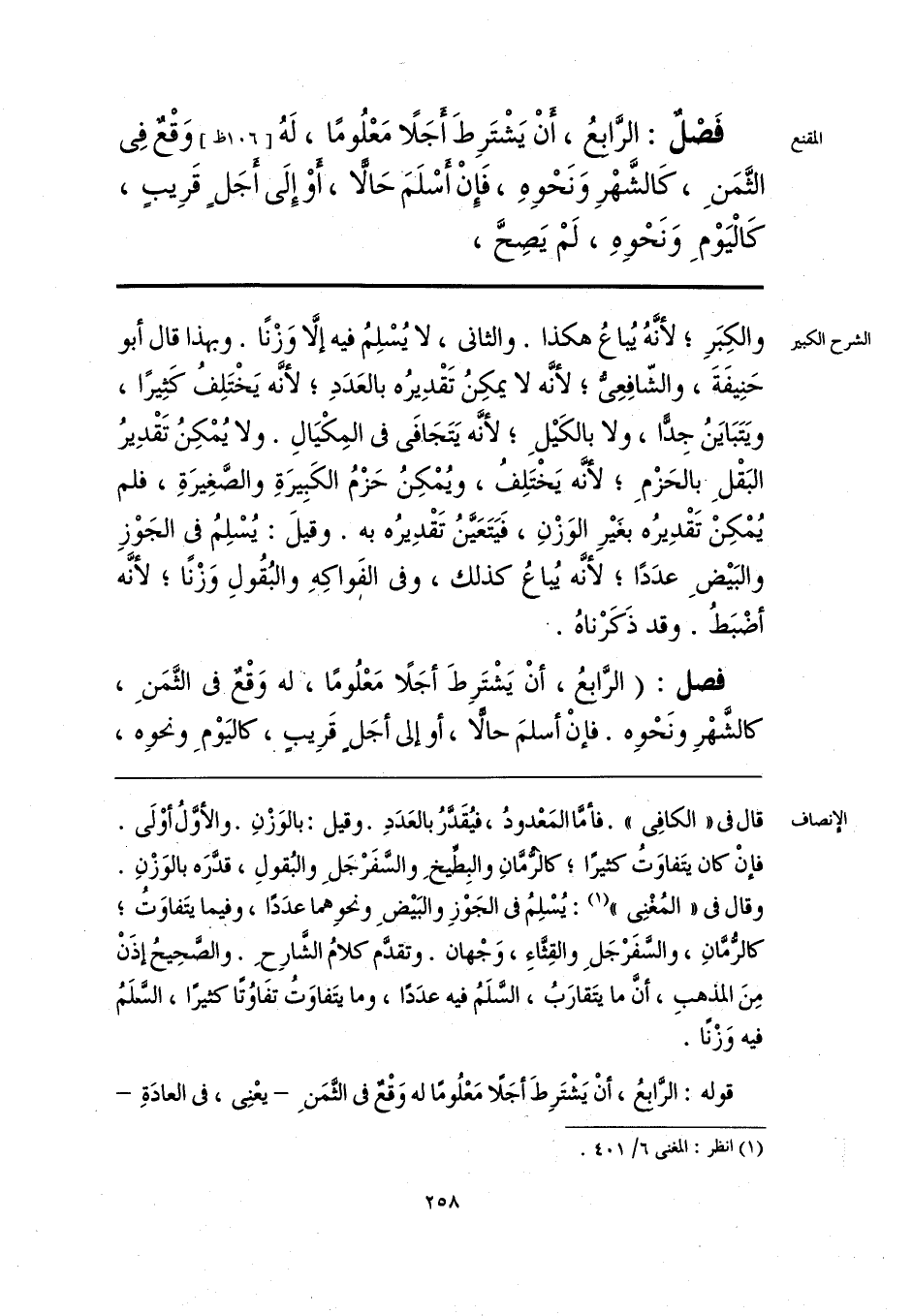 قال في «الكافِي». فأمَّا المَعْدودُ، فيُقدَّرُ بالعَدَدِ. وقيل: بالوَزْنِ. والأوَّلُ أوْلَى. فإنْ كان يتَفاوَتُ كثيرًا؛ كالرُّمَّانِ والبِطِّيخِ والسَّفَرْجَلِ والبُقولِ، قدَّرَه بالوَزْنِ. وقال في «المُغْنِي» (¬1): يُسْلِمُ في الجَوْزِ والبَيضِ ونحوهما عدَدًا، وفيما يتَفاوَت؛ كالرُّمَانِ، والسَّفَرْجَلِ والقِثَّاءِ، وَجْهان. وتقدَّم كلامُ الشَّارِحِ. والصَّحِيحُ إذَنْ مِنَ المذهبِ، أنَّ ما يتَقارَبُ، السَّلَمُ فيه عدَدًا، وما يتَفاوَتُ تفَاوُتًا كثيرًا، السَّلَمُ فيه وَزْنًا.