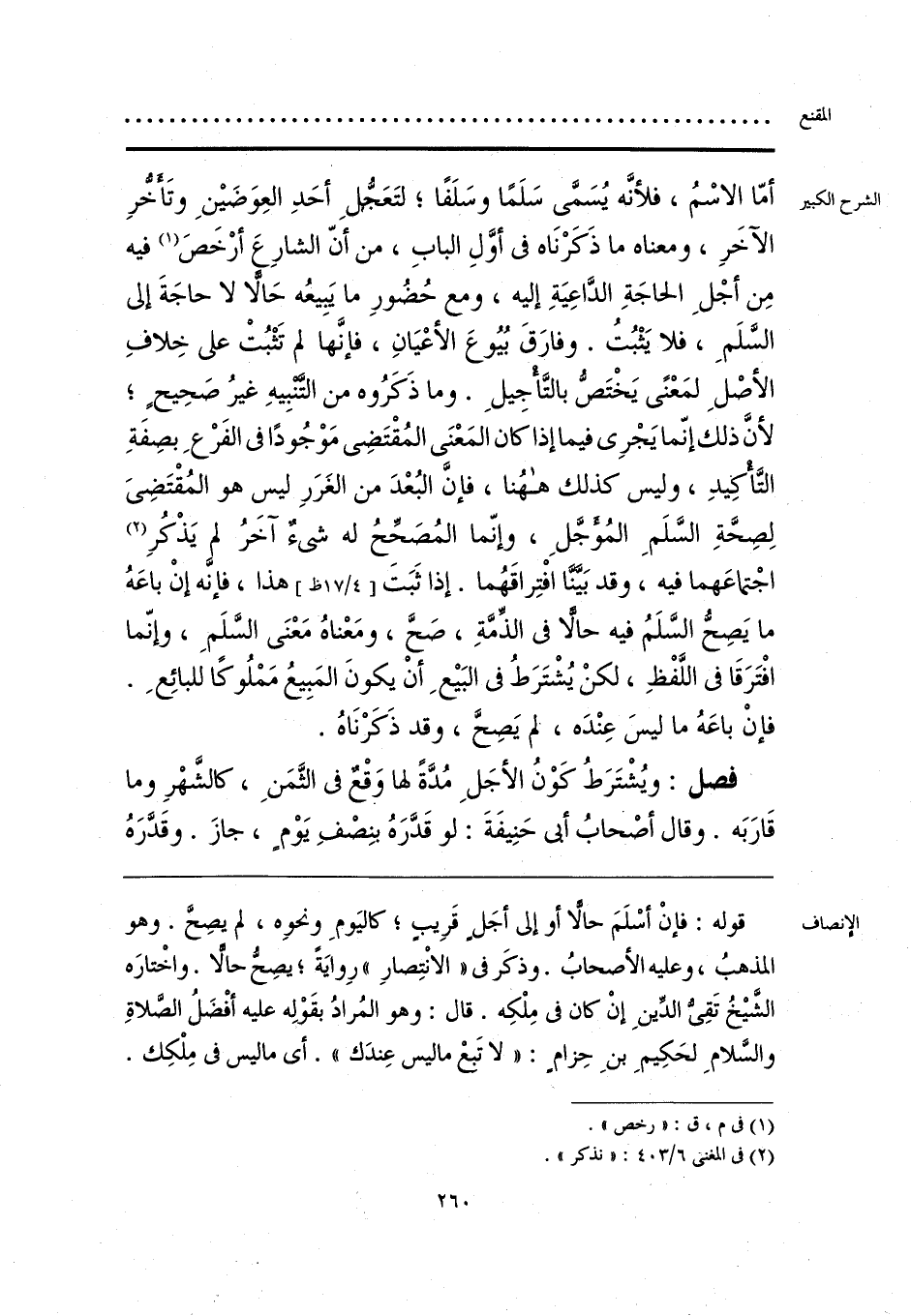 قوله: فإنْ أسْلَمَ حالًا أو إلى أجَلٍ قَرِيبٍ؛ كاليَومِ ونحوه، لم يصِحَّ. وهو المذهبُ، وعليه الأصحابُ. وذكَر في «الانْتِصارِ» رِوايَةً؛ يصِحُّ حالًّا. واخْتارَه الشَّيخُ تَقِيُّ الدِّينِ إنْ كان في مِلْكِه. قال: وهو المُرادُ بقَوْلِه عليه أفْضَلُ الصَّلاةِ والسَّلامِ لحَكِيمِ بنِ حِزامٍ: «لا تَبْع ما ليس عِندَك». أي ما ليس في مِلْكِك.