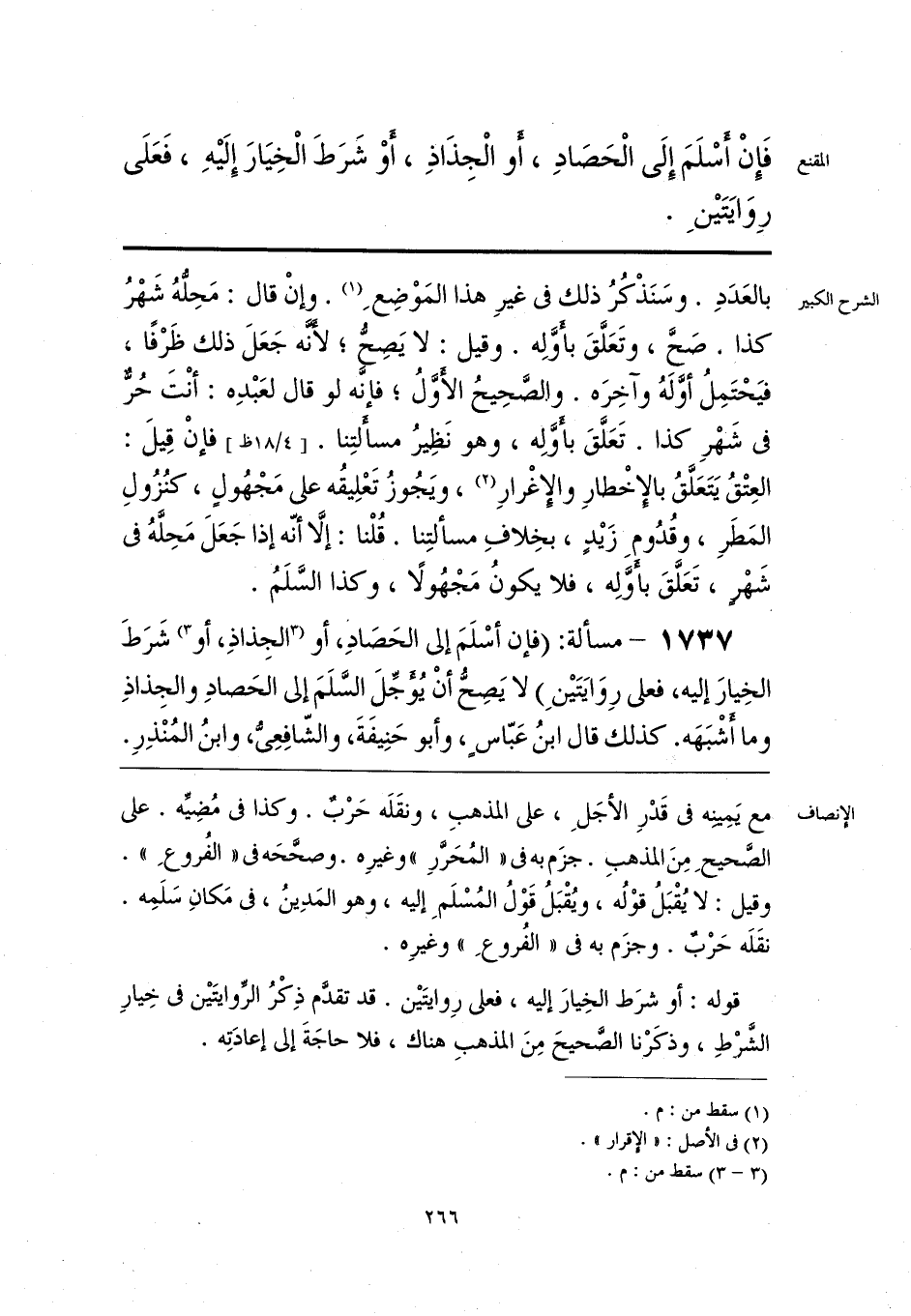 فَإِنْ أَسْلَمَ إِلَى الْحَصَادِ، أَو الْجِذَاذِ، أَو شَرَطَ الْخِيَارَ إِلَيهِ، فَعَلَى رِوَايَتَينَ.