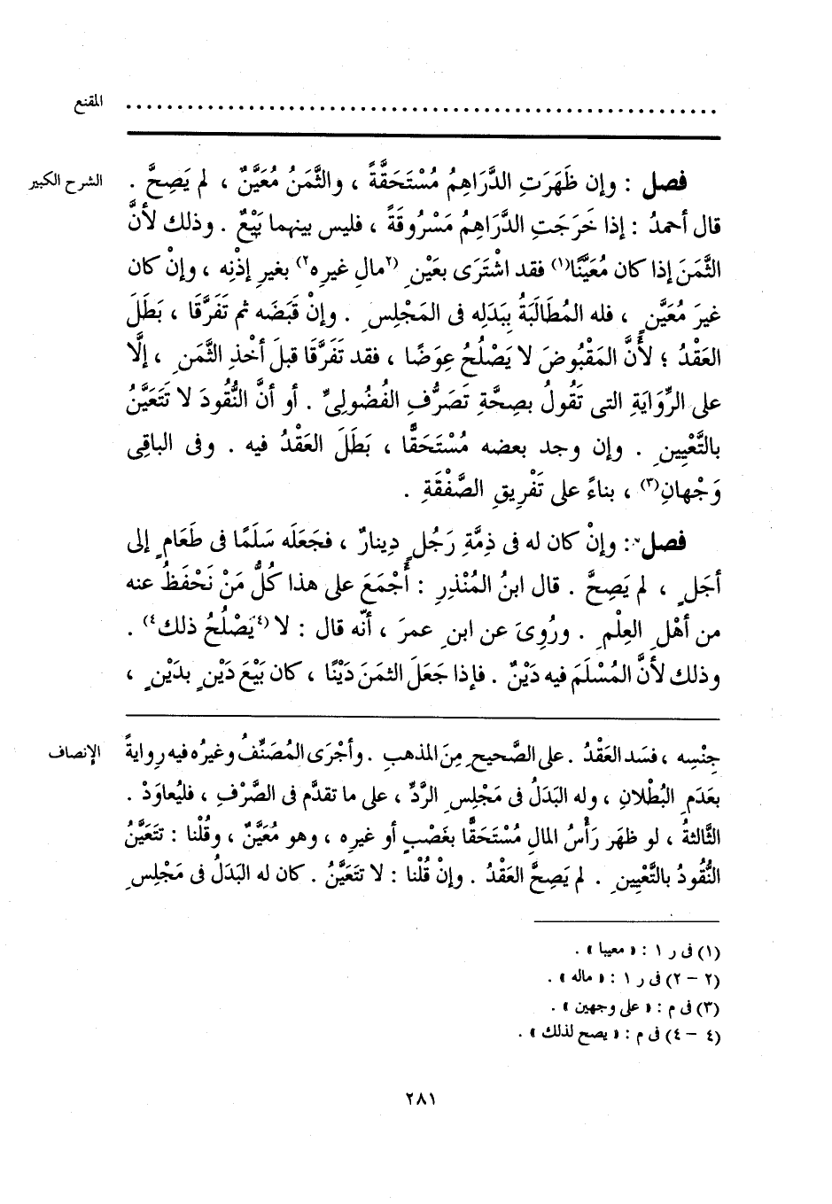 جِنْسِه، فسَد العَقْدُ. على الصَّحيحِ مِنَ المذهبِ. وأجْرَى المُصَنِّفُ وغيرُه فيه رِوايةً بعَدَمِ البُطْلانِ، وله البَدَلُ في مَجْلِسِ الرَّدِّ، على ما تقدَّم في الصَّرْفِ، فليُعاوَدْ. الثَّالثةُ، لو ظهَر رَأْسُ المالِ مُسْتَحَقًّا بغَصْبٍ أو غيرِه، وهو معَيَّنٌ، وقُلْنا: تتَعَيَّنُ النُّقُودُ بالتَّعْيِينِ. لم يَصِحَّ العَقْدُ. وإنْ قُلْنا: لا تتَعَيَّنُ. كان له البَدَلُ في مَجْلِسِ