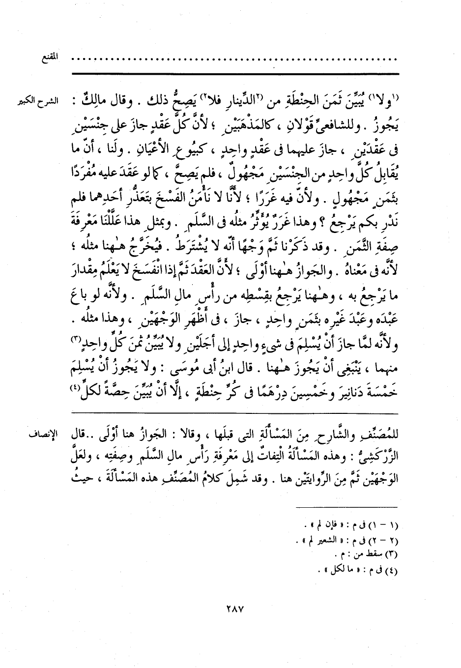 للمُصَنِّفِ والشَّارِحِ مِنَ المَسْأَلَةِ التي قبلَها، وقالا: الجَوازُ هنا أوْلَى .. قال الزَّرْكَشِيُّ: وهذه المَسْألَةُ الْتِفاتٌ إلى مَعْرِفَةِ رَأْسِ مالِ السَّلَمِ وصِفَتِه، ولعَلَّ الوَجْهَين ثَمّ مِنَ الرِّوايتَين هنا. وقد شَمِلَ كلامُ المُصَنِّفِ هذه المَسْألَةَ، حيثُ