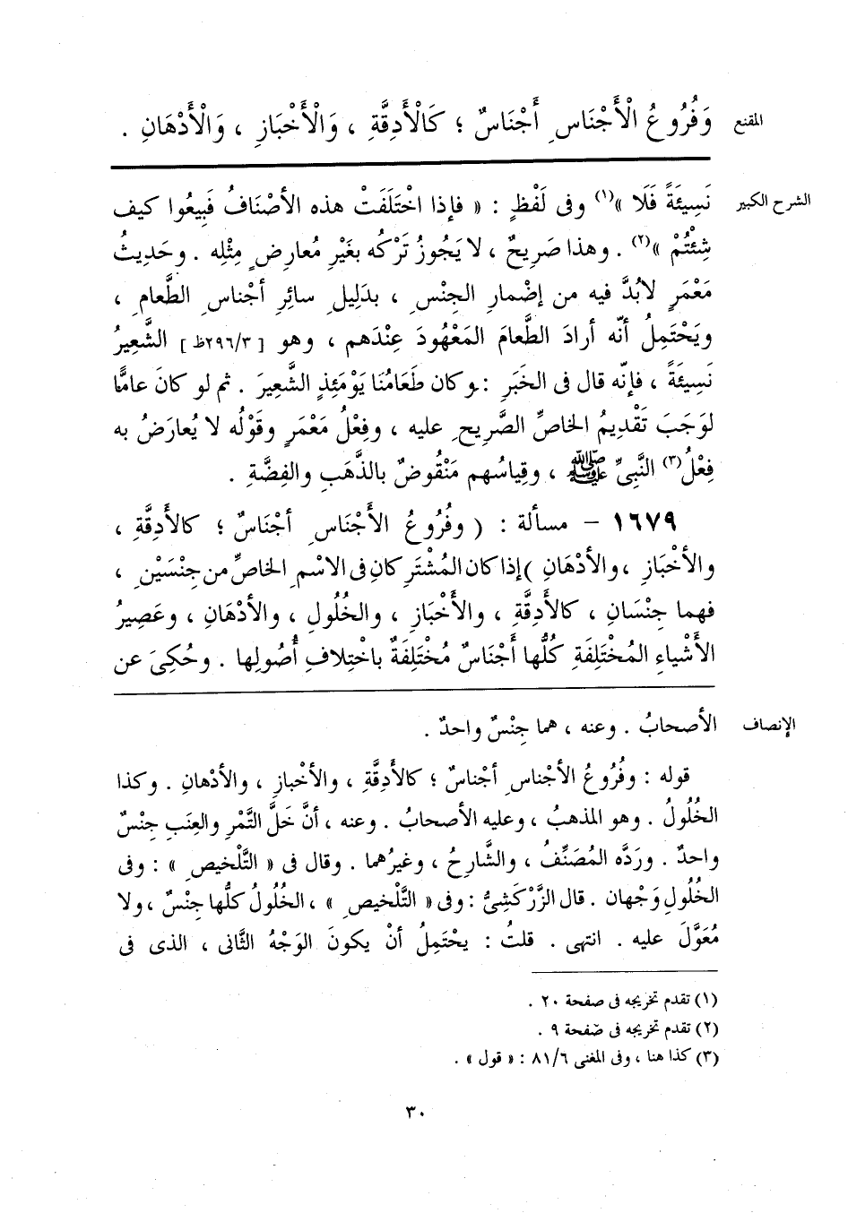 وَفُرُوعُ الْأَجْنَاسِ أَجنَاسٌ، كَالْأَدِقَّةِ، وَالْأَخْبَازِ، وَالْأَدْهَانِ.