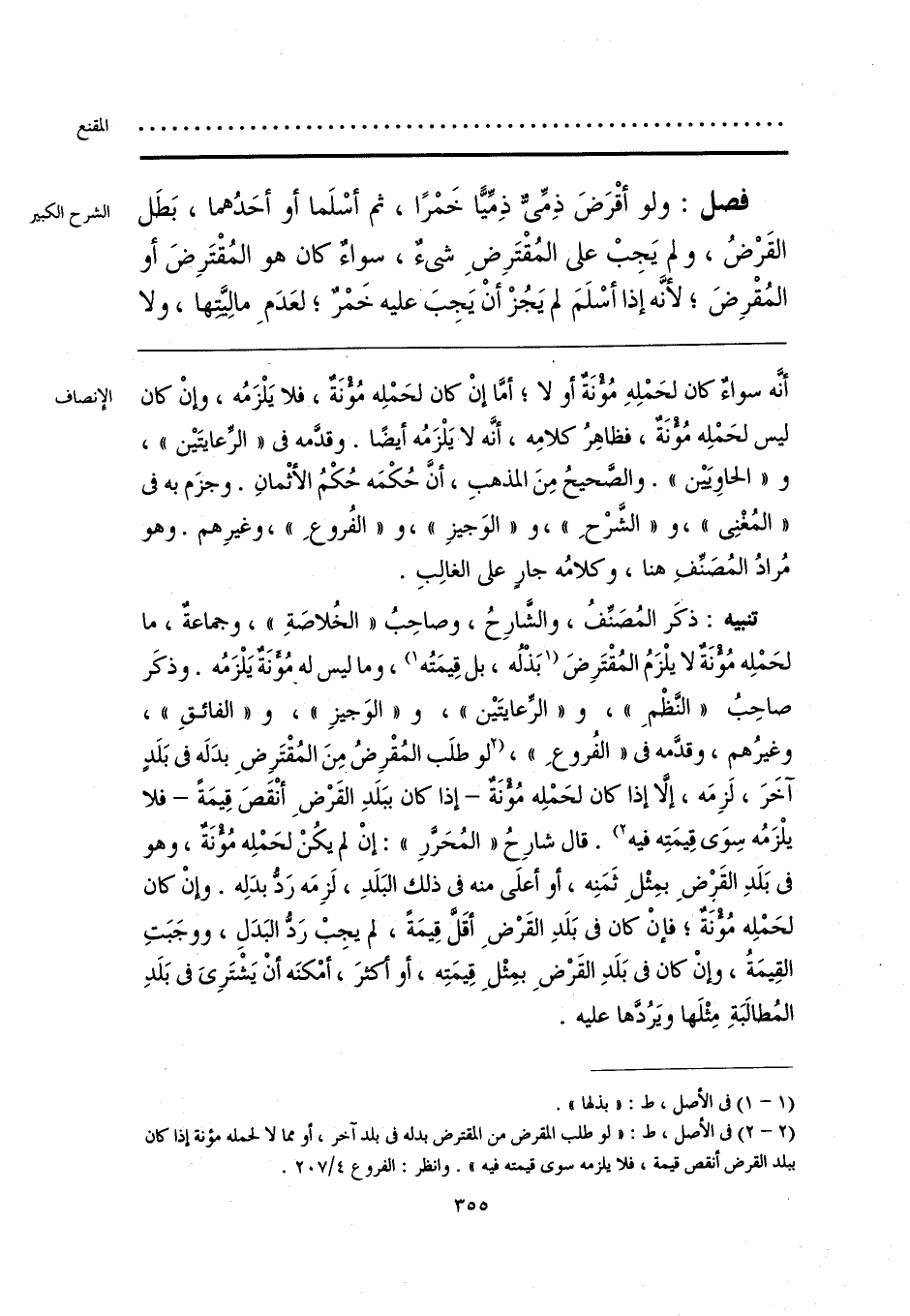 (¬2) في الأصل، ط: «لو طلب المقرض من المقترض بدله في بلد آخر، أو مما لا لحمله مؤنة إذا كان ببلد القرض أنقص قيمة، فلا يلزمه سوى قيمته فيه». وانظر: الفروع 4/ 207.