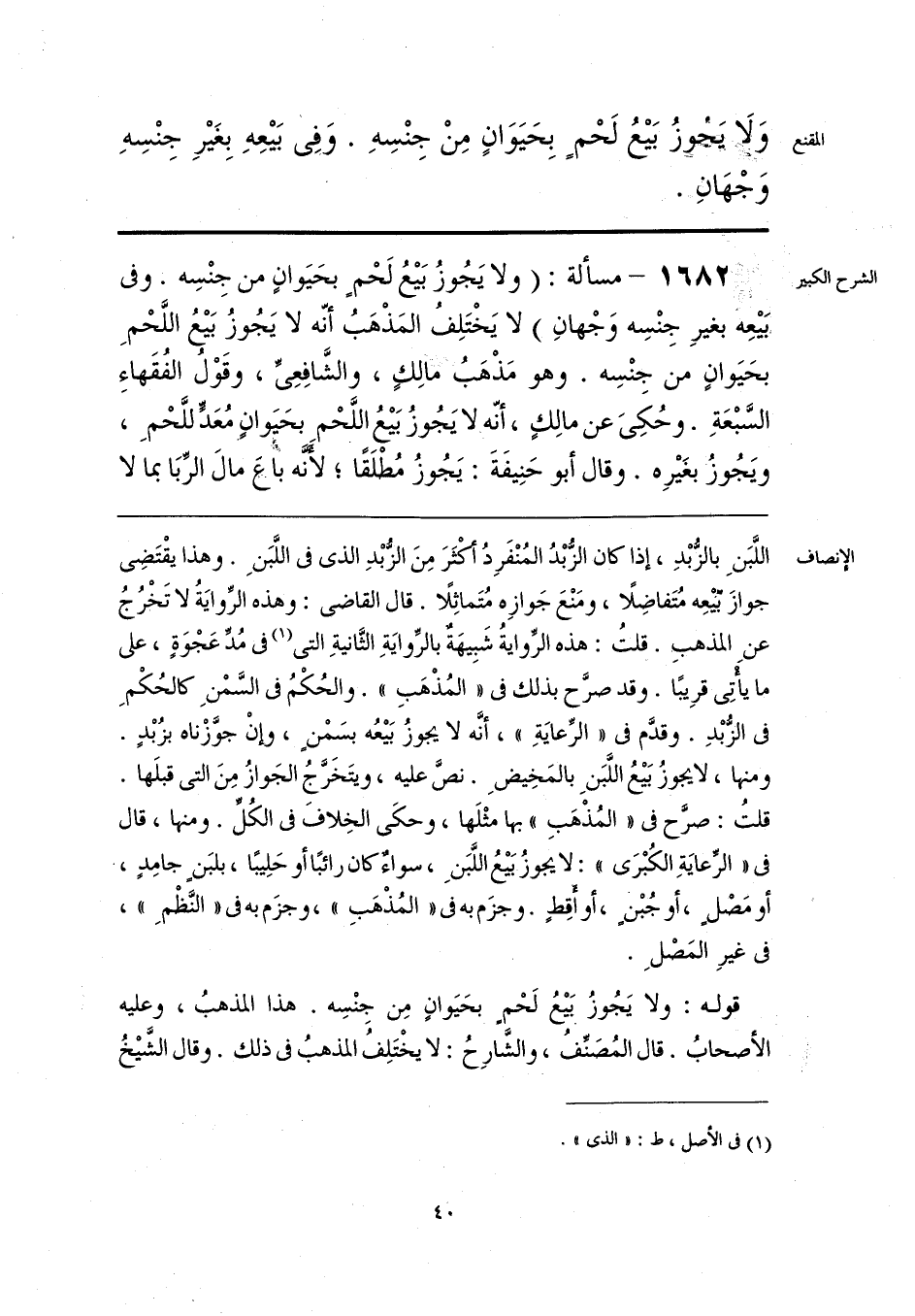 قوله: ولا يَجُوزُ بَيعُ لَحْم بحَيَوانٍ مِن جِنْسِه. هذا المذهبُ، وعليه الأصحابُ. قال المُصَنِّفُ، والشَّارِحُ: لا يخْتَلِفُ المذهبُ في ذلك. وقال الشَّيخُ