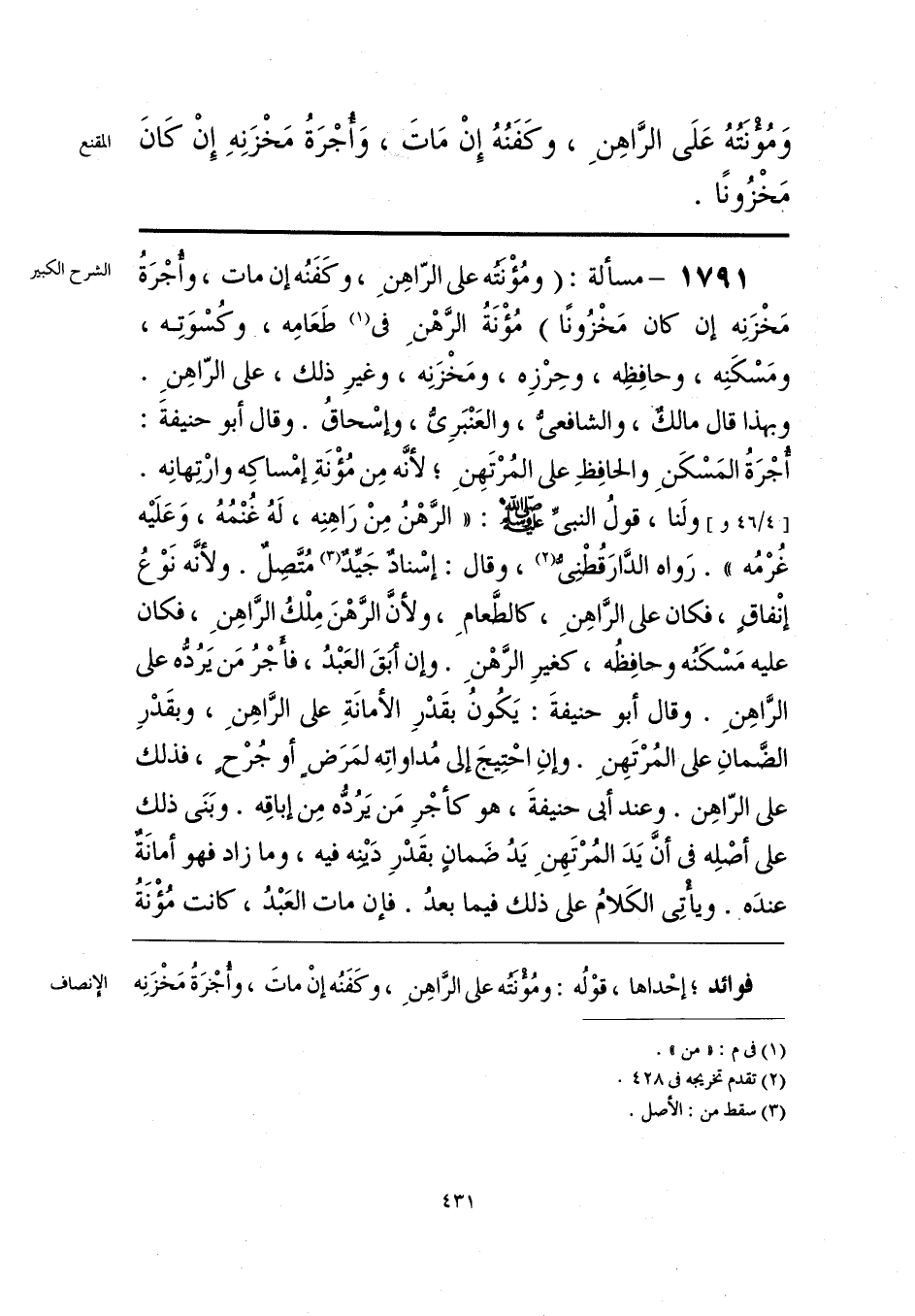 فوائد؛ إحْداها، قوْلُه: ومُؤنته على الرَّاهِنِ، وكَفَنُه إنْ ماتَ، وأجرَةُ مَخْزَنِه