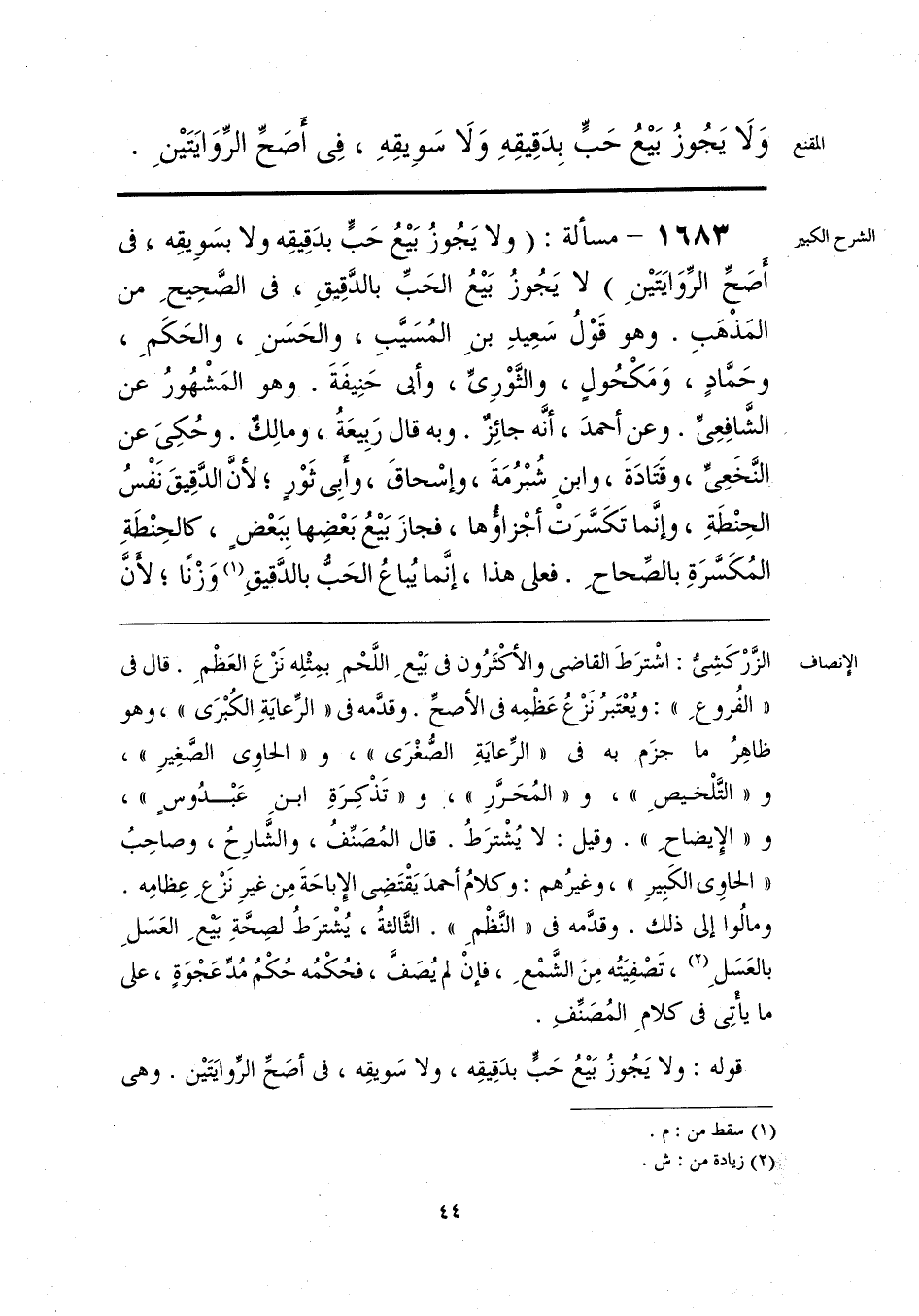 الزَّرْكَشِيُّ: اشْترَطَ القاضي والأكْثَرُون في بَيعِ اللَّحْمِ بمِثْلِه نَزْعَ العَظْمِ. قال في «الفُروعِ»: ويُعْتَبرُ نَزْعُ عَظْمِه في الأصحِّ. وقدَّمه في «الرِّعايَةِ الكُبْرَى»، وهو ظاهِرُ ما جزَم به في «الرِّعايَةِ الصُّغْرَى»، و «الحاوي الصَّغِيرِ»، و «التَّلْخيصِ»، و «المُحَرَّرِ»، و «تَذْكِرَةِ ابنِ عَبْدُوسٍ»، و «الإِيضاحِ». وقيل: لا يُشْترَطُ. قال المُصَنِّفُ، والشَّارِحُ، وصاحِبُ «الحاوي الكَبِيرِ»، وغيرُهم: وكلامُ أحمدَ يَقْتَضِي الإِباحَةَ مِن غيرِ نزْعِ عِظامِه. ومالُوا إلى ذلك. وقدَّمه في «النَّظْمِ». الثَّالثةُ، يُشْترَطُ لصِحَّةِ بَيعِ العَسَلِ بالعَسَلِ (¬1)، تَصْفِيَتُه مِنَ الشَّمْعِ، فإنْ لم يُصَفَّ، فحُكْمُه حُكْمُ مُدِّ عَجْوَةٍ، على ما يأْتِي في كلامَ المُصَنِّفِ.