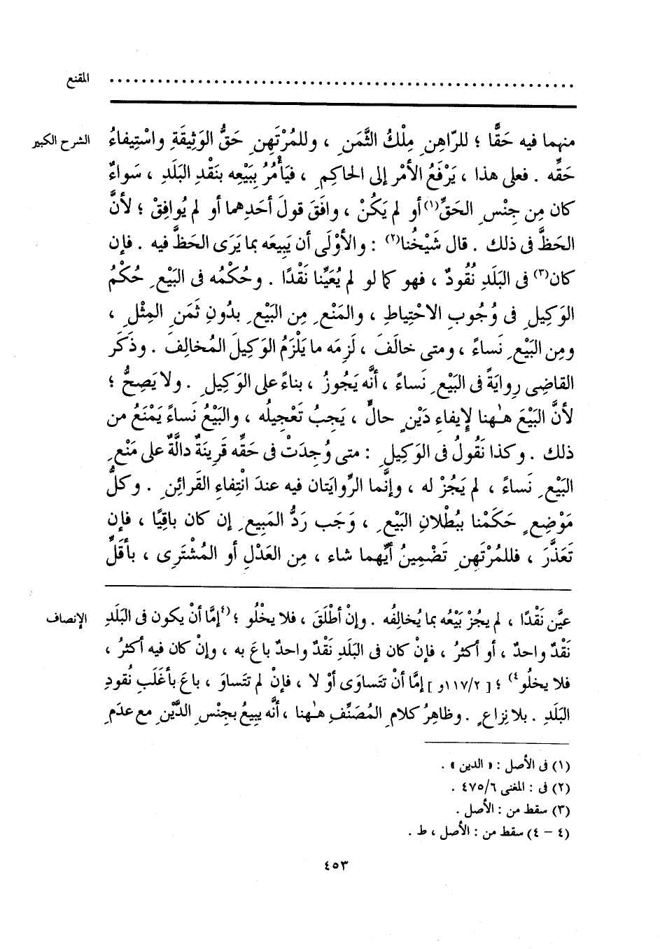 عيَّن نَقْدًا، لم يجُزْ بَيعُه بما يُخالِفُه. وإنْ أطْلَقَ، فلا يخْلُو؛ [إمَّا أن يكون في البَلَدِ نَقْدٌ واحدٌ، أو أكثرُ، فإن كان في البَلَدِ نَقْدٌ واحدٌ باعَ به، وإنْ كان فيه أكثرُ، فلا يخلُو] (¬1)؛ إمَّا أن تتَساوَى أوْ لا، فإن لم تتَساوَ، باعَ بأغَلَبِ نُقودِ البَلَدِ. بلا نِزاعٍ. وظاهِرُ كلامِ المُصَنِّفِ ها هنا، أَنَّه يبِيعُ بجِنْسِ الدَّينِ مع عدَمِ
