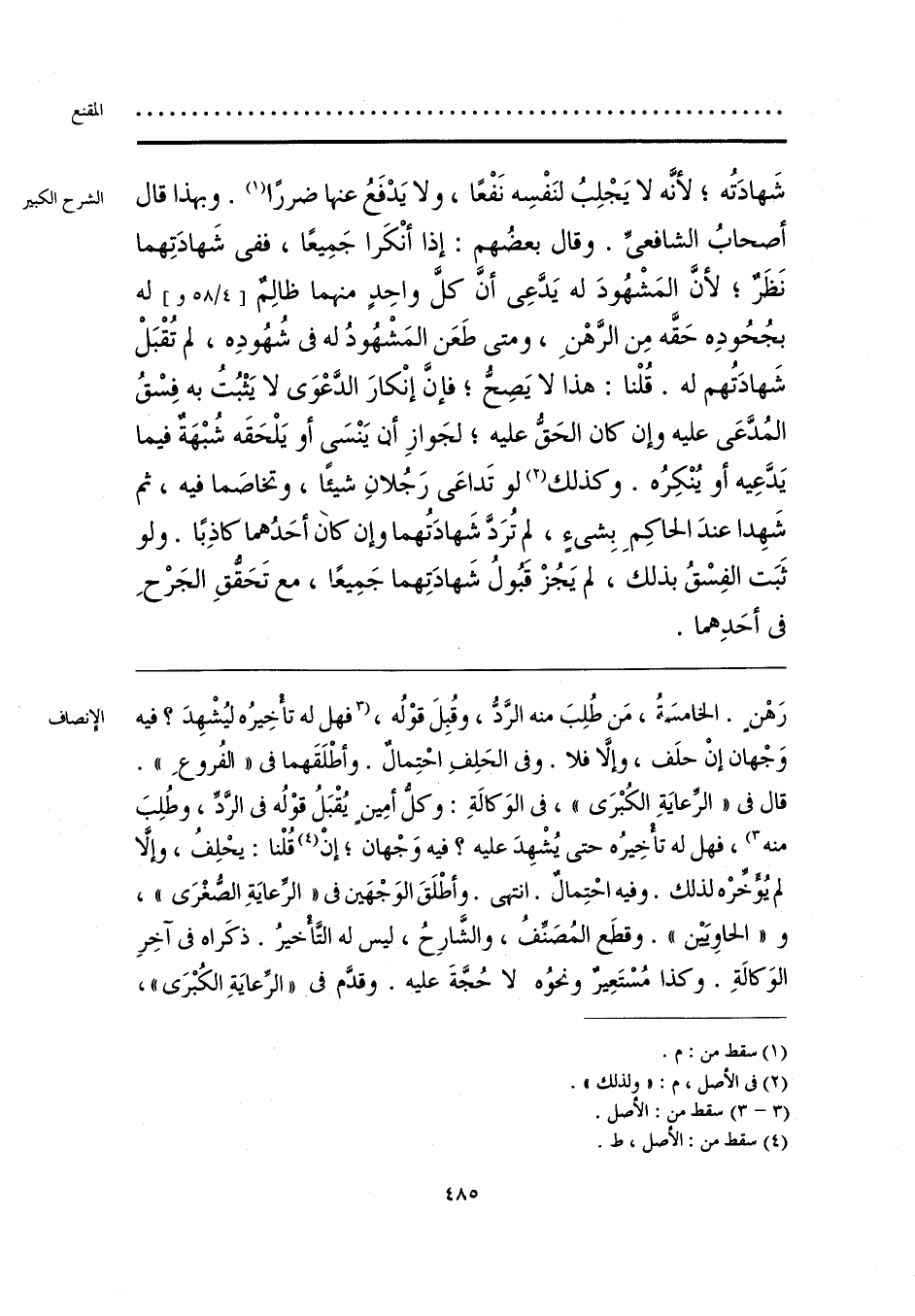 رَهْن. الخامسَةُ، مَن طُلِبَ منه الرَّدُّ، وقُبِلَ قوْلُه، [فهل له تأخِيرُه ليُشْهِدَ؟ فيه وَجْهان إنْ حلَف، وإلَّا فلا. وفي الحَلِفِ احْتِمال. وأطْلَقَهما في «الفُروعِ». قال في «الرِّعايَةِ الكُبْرَى»، في الوَكالةِ: وكلُّ أمِين يُقْبَلُ قوْلُه في الرَّدِّ، وطُلِبَ منه] (¬1)، فهل له تأخِيرُه حتى يُشْهِدَ عليه؟ فيه وَجْهان؛ إنْ (¬2) قُلْنا: يحْلِفُ، وإلَّا لم يُؤخِّرْه لذلك. وفيه احْتِمال. انتهى. وأطْلَقَ الوَجْهَين في «الرِّعايَةِ الصُّغْرَى»، و «الحاويَيْن». وقطَع المُصَنِّفُ، والشَّارِحُ، ليس له التَّأخيرُ. ذكَراه في آخِرِ الوَكالةِ. وكذا مُسْتَعِيرٌ ونحوُه لا حُجَّةَ عليه. وقدَّم في «الرعايَةِ الكُبْرَى»،