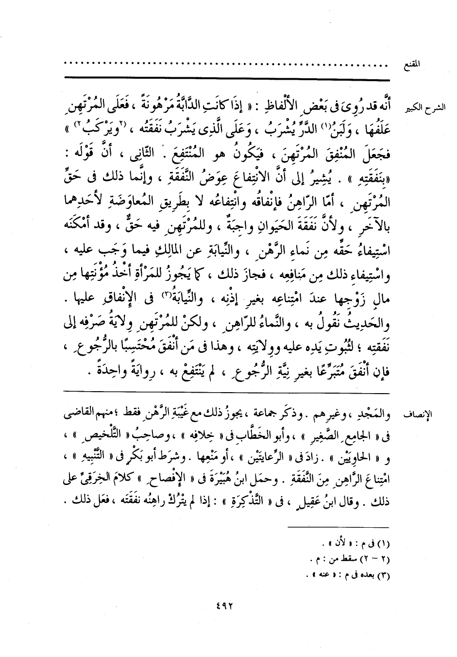 والمَجْدِ، وغيرِهم. وذكَر جماعةٌ، يجوزُ ذلك مع غَيبَةِ الرَّهْنِ فقط؛ منهم القاضي في «الجامِعِ الصَّغِيرِ»، وأبو الخَطَّابِ في «خِلافِه»، وصاحِبُ «التَّلْخيصِ»، و «الحاويَيْن». زادَ في «الرعايتَين»، أو مَنْعِها. وشرَط أبو بَكْر في «التَّنْبِيهِ»، امْتِناعَ الرَّاهِنِ مِنَ النَّفَقَةِ. وحمَل ابنُ هُبَيرَةَ في «الإفْصاحِ» كلامَ الخِرَقِيِّ على ذلك. وقال ابنُ عَقِيل، في «التَّذْكِرَةِ»: إذالم يتْرُكْ راهِنُه نفَقَتَه، فعَل ذلك.