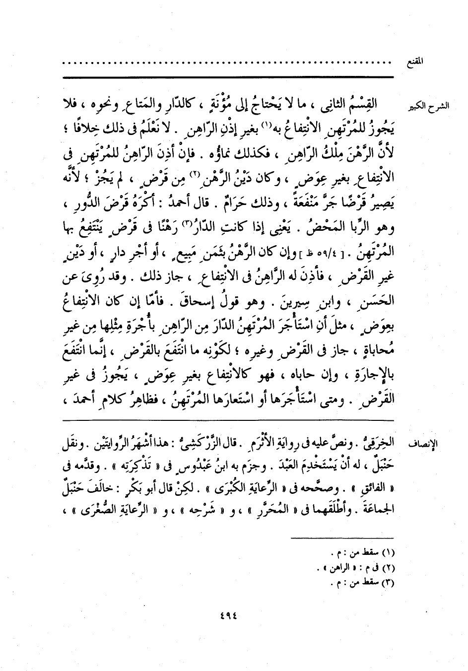 الخِرَقِيُّ. ونصَّ عليه في رِوايَةِ الأثْرَمِ. قال الزَّرْكَشِيُّ: هذا أشْهَرُ الرِّوايتَين. ونقَل حَنْبَل، له أنْ يَسْتَخْدِمَ العَبْدَ. وجزَم به ابنُ عَبْدُوس في «تَذْكِرَتِه». وقدَّمه في «الفائقِ». وصحَّحه في «الرِّعايَةِ الكُبْرَى». لكِنْ قال أبو بَكْر: خالفَ حَنْبَل الجماعَةَ. وأطْلَقَهما في «المُحَرَّرِ» و «شَرْحِه»، و «الرِّعايَةِ الصُّغْرَى»،