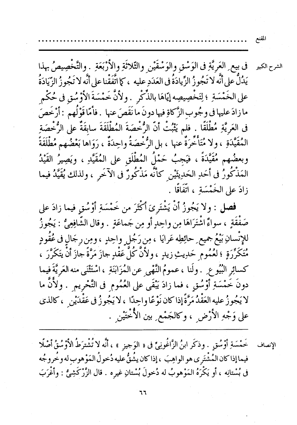 خَمْسَةِ أوْسُقٍ. وذكَر ابنُ الزَّاغُونِيِّ في «الوَجيزِ»، أنَّه لا تُشْترَطُ الأوْسُقُ أصْلًا فيما إذا كان المُشْتَرِي هو الواهِبَ، إذا كان يشُقُّ عليه دُخولُ المَوْهوبِ له وخُروجُه في بُسْتانِه، أو يَكْرَهُ المَوْهوبُ له دُخولَ بُسْتانِ غيرِه. قال الزَّرْكَشِيُّ: وأغْرَبَ