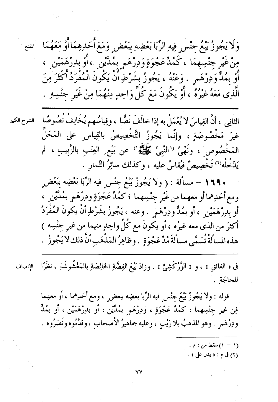 في «الفائقِ»، و «الزَّرْكَشِيِّ». وزادَ بَيعَ الفِضَّةِ الخالِصَةِ بالمَغْشُوشَةِ، نظَرًا للحاجَةِ.
