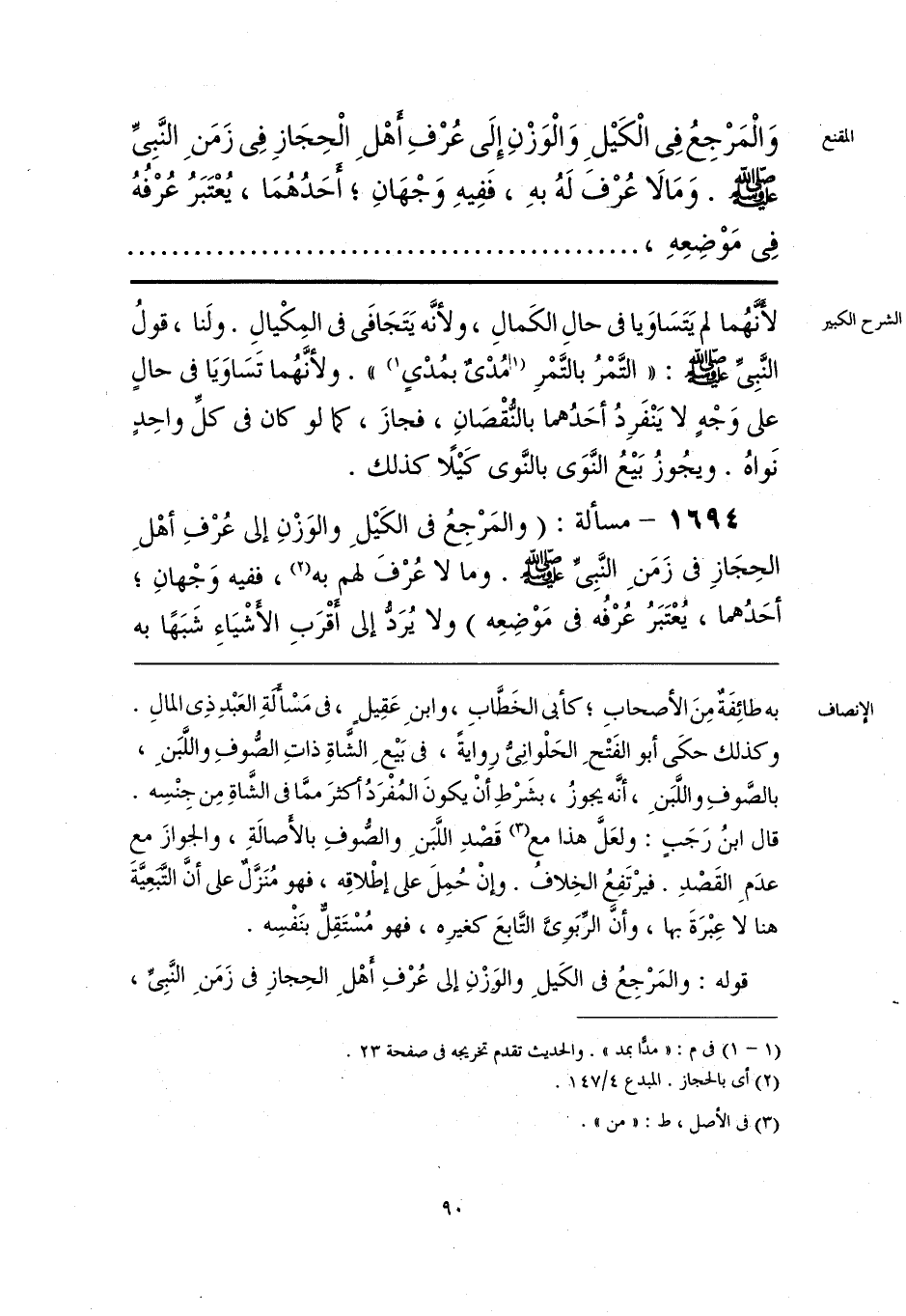 قوله: والمَرْجِعُ في الكَيلِ والوزْنِ إلى عُرْفِ أَهْلِ الحِجازِ في زَمَنِ النَّبِيِّ،