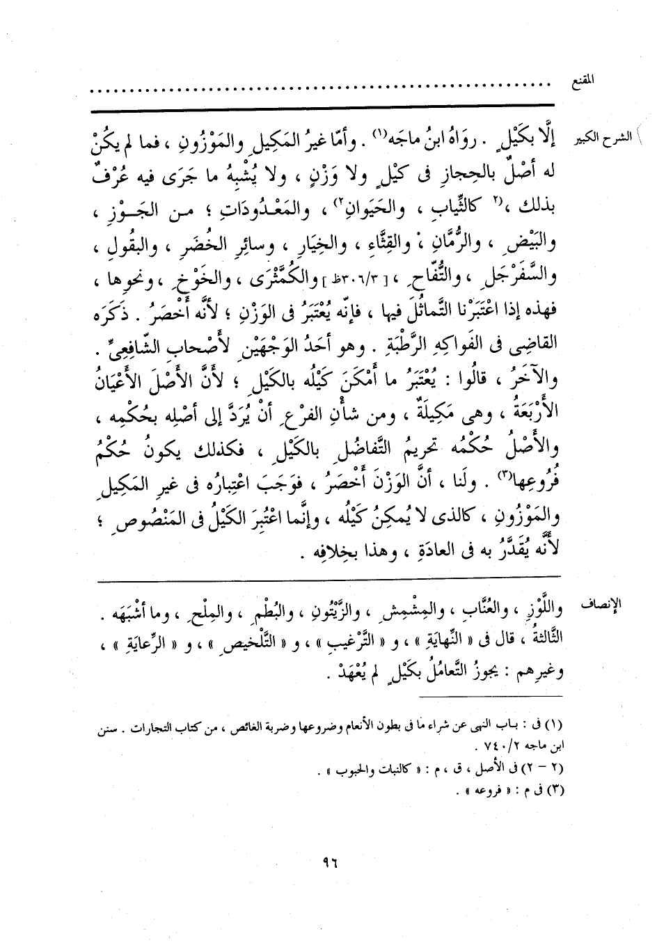 واللَّوْز، والعُنَّابِ، والمِشْمِشِ، والزَّيتُونِ، والبُطْمِ، والمِلْحِ، وما أشْبَهَه. الثَّالثةُ، قال في «النِّهايَةِ»، و «التَّرْغيبِ»، و «التَّلْخيصِ»، و «الرِّعايَةِ»، وغيرِهم: يجوزُ التَّعامُلُ بكَيل لم يُعْهَدْ.