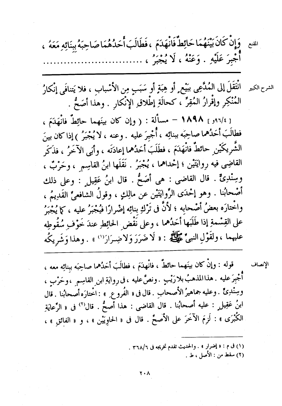 قوله: وإنْ كان بينَهما حائطٌ، فانْهدَمَ، فطالبَ أحَدُهما صاحِبَه ببِنائِه معه، أُجْبِرَ عليه. هذا المذهبُ بلا رَيبٍ. ونصَّ عليه، في رِوايَةِ ابنِ القاسِمِ، وحَرْبٍ، وسِنْدِيٍّ. وعليه جماهيرُ الأصحابِ. قال في «الفُروعِ»: اخْتارَه أصحابُنا. قال ابنُ عَقِيلٍ: عليه أصحابُنا. قال القاضي: هذا أصحُّ. قال (¬1) في «الرِّعايَةِ الكُبْرَى»: لَزِمَ الآخَرَ على الأصحِّ. قال في «الحاويَيْن»، و «الفائقِ»،