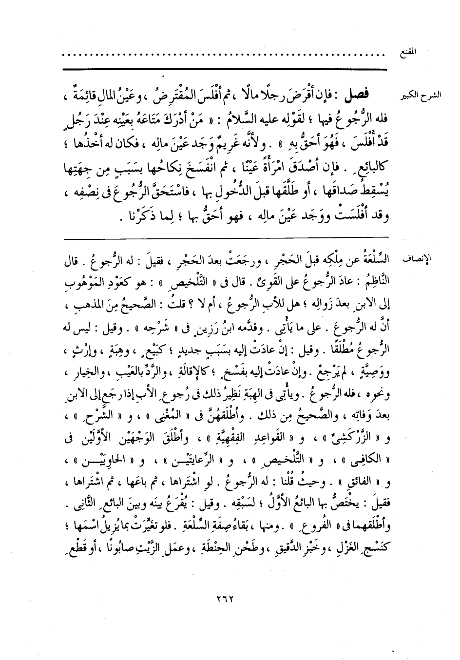 السِّلْعَةُ عن مِلْكِه قبلَ الحَجْرِ، ورجَعَتْ بعدَ الحَجْرِ، فقيلَ: له الرُّجوعُ. قال النَّاظِمُ: عادَ الرُّجوعُ على القَويِّ. قال في «التَّلْخيصِ»: هو كعَوْدِ المَوْهُوبِ إلى الابنِ بعدَ زَوالِه؛ هل للأبِ الرُّجوعُ، أم لا؟ قلتُ: الصَّحيحُ مِنَ المذهبِ، أنَّ له الرُّجوعَ. على ما يَأْتِي. وقدَّمه ابنُ رَزِينٍ في «شَرْحِه». وقيل: ليس له الرُّجوعُ مُطْلَقًا. وقيل: إنْ عادَتْ إليه بسَبَبٍ جديدٍ؛ كبَيع، وهِبَةٍ، وإرْثٍ، ووَصِيَّةٍ، لم يَرْجِعْ. وإنْ عادَتْ إليه بفَسْخ؛ كالإِقالةِ، والرَّدِّ بالعَيبِ، والخِيارِ، ونحوه، فله الرُّجوعُ. ويأْتِي في الهِبَةِ نَطرُ ذلك في رُجوعِ الأبِ إذا رجَع إلى الابنِ بعدَ وَفاتِه، والصَّحيحُ مِن ذلك. وأطْلَقهُنَّ في «المُغْني»، و «الشَّرْحِ»، و «الزَّرْكَشِيِّ»، و «القَواعِدِ الفِقْهِيَّةِ»، وأطْلَقَ الوَجْهَين الأوَّلَين في «الكافِي»، و «التَّلْخيصِ»، و «الرِّعايتَين»، و «الحاويَيْن»، و «الفائقِ». وحيثُ قُلْنا: له الرُّجوعُ. لو اشْتَراها، ثم باعَها، ثم اشْتَراها، فقيلَ: يخْتَصُّ بها البائعُ الأوَّلُ؛ لسَبْقِه. وقيل: يُقْرَعُ بينَه وبينَ البائعِ الثَّانِي. وأطْلَقهما في «الفُروعِ». ومنها، بَقاءُ صِفَةِ السِّلْعَةِ. فلو تغَيَّرَتْ بما يُزِيلُ اسْمَها؛ كنَسْجِ الغَزْلِ، وخَبْزِ الدَّقيقِ، وطَحْنِ الحِنْطَةِ، وعمَلِ الزَّيتِ صابُونًا، أو قَطْعِ