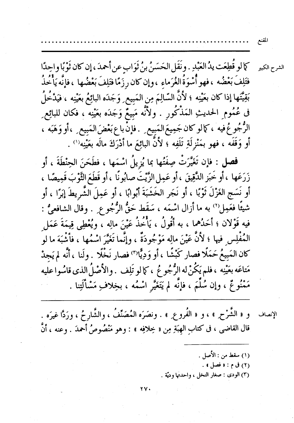و «الشَّرْح»، و «الفُروعِ». ونصَرَه المُصَنِّفُ، والشَّارِحُ، ورَدَّا غيرَه. قال القاضي، في كتابِ الهِبَةِ مِن «خِلافِهِ»: وهو مَنْصُوصُ أحمدَ. وعنه، أنَّ