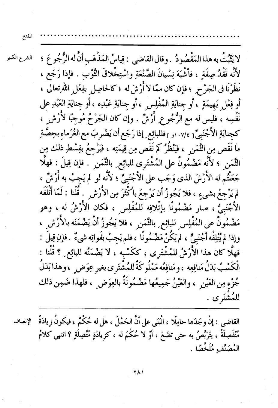 القاضي: إنْ وجَدَها حامِلًا، انْبَنَى على أنَّ الحَمْلَ، هل له حُكْمٌ، فيكونُ زِيادَةً مُنْفَصِلَةً، يَتَرَبَّصُ به حتَّى تضَعَ، أوْ لا حُكْمَ له، كزِيادَةٍ مُتَّصِلَةٍ؟ انتهى كلامُ المُصَنِّفِ مُلْخَّصًا.
