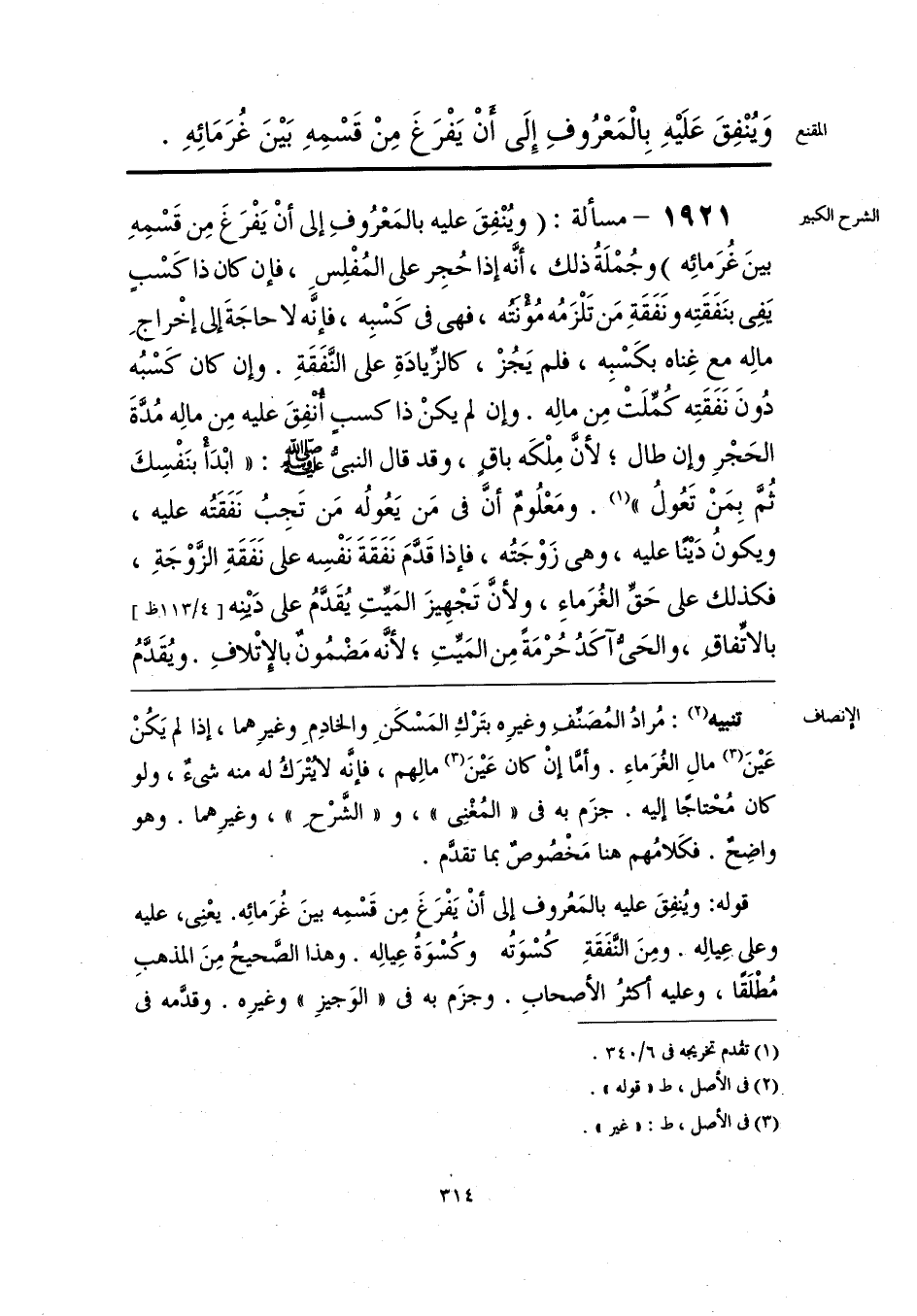 قوله: ويُنفِقَ عليه بالمَعُروف إلى أنْ يَفْرَغَ مِن قَسْمِه بينَ غُرَمائِه. يعْنِي، عليه وعلى عِيالِه. ومِنَ النَّفَقَةِ كُسْوَتُه وكُسْوَةُ عِيالِه. وهذا الصَّحيحُ مِنَ المذهبِ مُطْلَقًا، وعليه أكْثَرُ الأصحابِ. وجزَم به في «الوَجيزِ» وغيرِه. وقدَّمه في