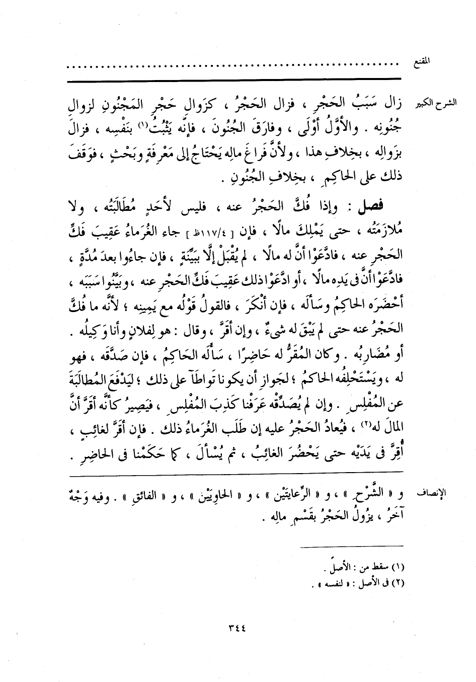 و «الشَّرْحِ»، و «الرِّعايتَين»، و «الحاويَيْن»، و «الفائقِ». وفيه وَجْهٌ آخَرُ، يزُولُ الحَجْرُ بقَسْمِ مالِه.