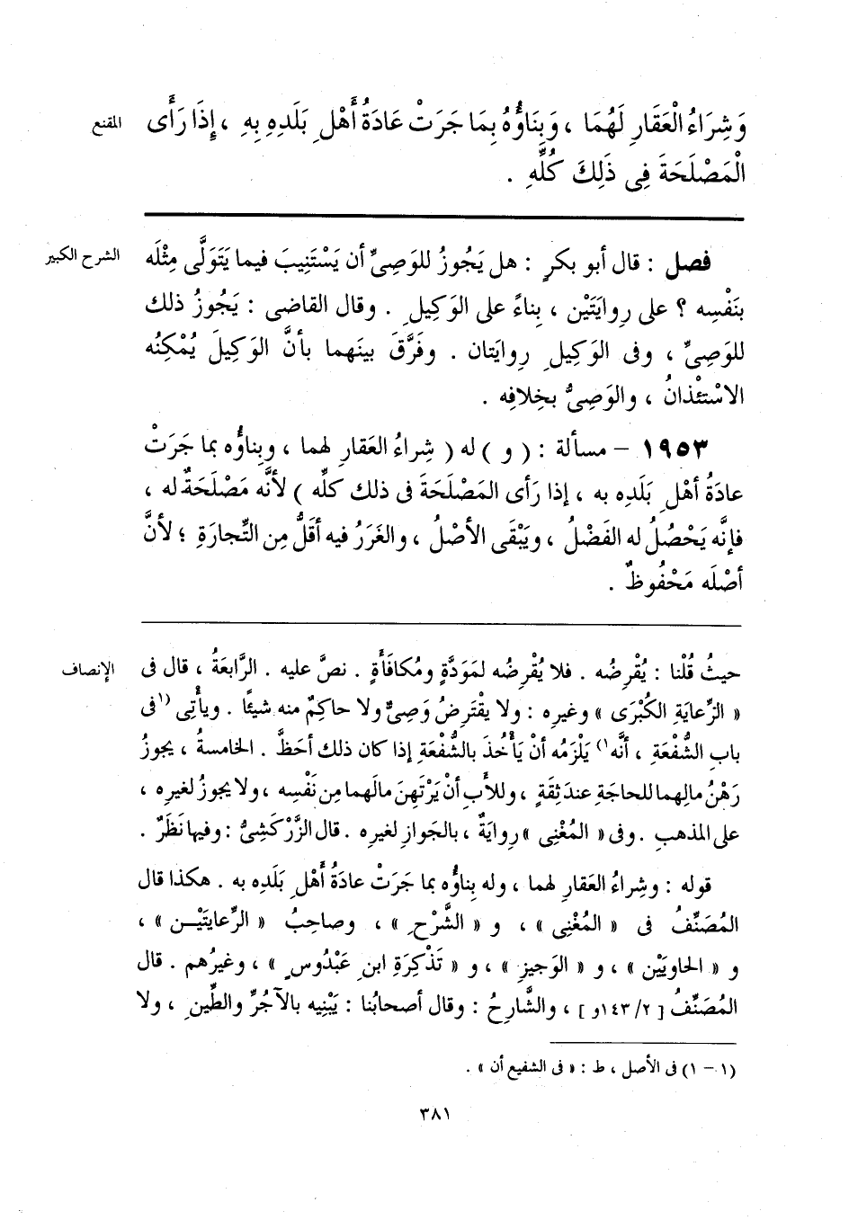 قوله: وشِراءُ العَقارِ لهما، وله بِناؤُه بما جَرَتْ عادَةُ أهْلَ بَلَدِه به. هكذا قال المُصَنِّفُ في «المُغْنِي»، و «الشَّرْحِ»، وصاحِبُ «الرِّعايتَين»، و «الحاويَيْن»، و «الوَجيز»، و «تَذْكِرَةِ ابنِ عَبْدُوسٍ»، وغيرُهم. قال المُصَنِّفُ، والشَّارِحُ: وقال أصحابُنا: يَبْنِيه بالآجُرِّ والطِّينِ، ولا